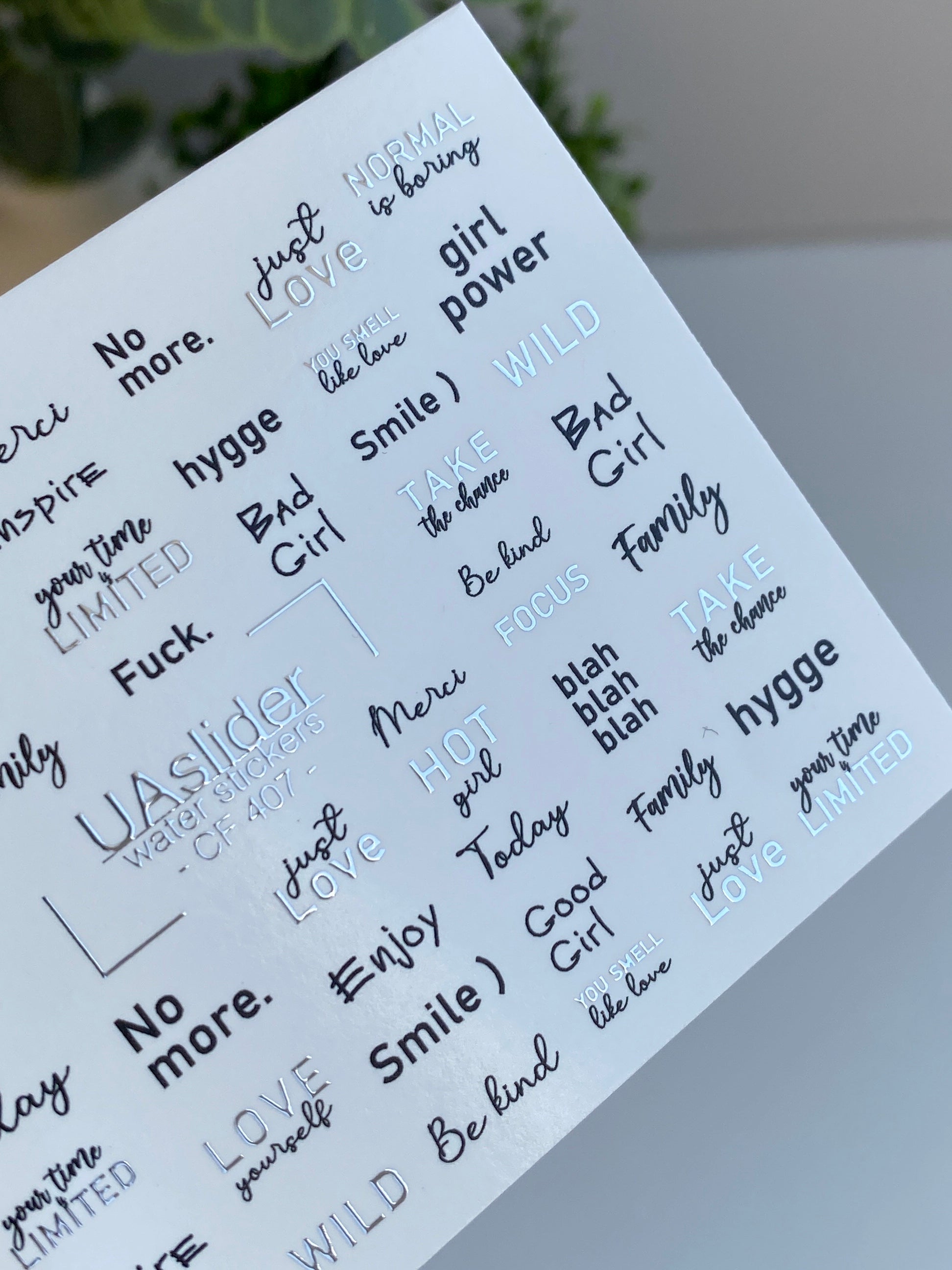 Nail Water Decal CF-407 | Minimalist Quote Nail Stickers | Water Slide Lettering Decals | CF 407