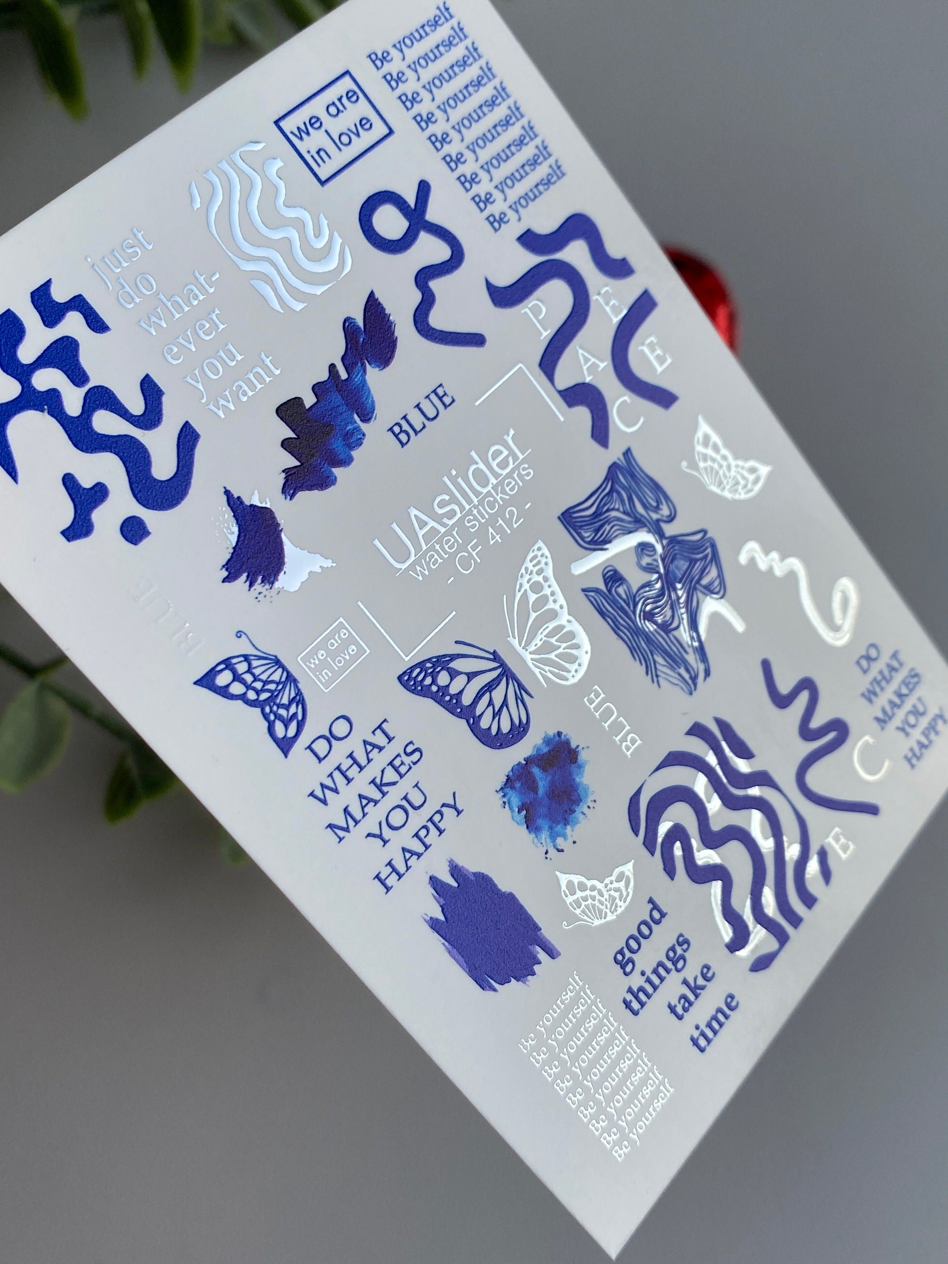 Nail Water Decal CF-412 | Blue Abstract & Butterfly Water Slide Nail Decals | Motivational Quotes Nail ArtCF_412