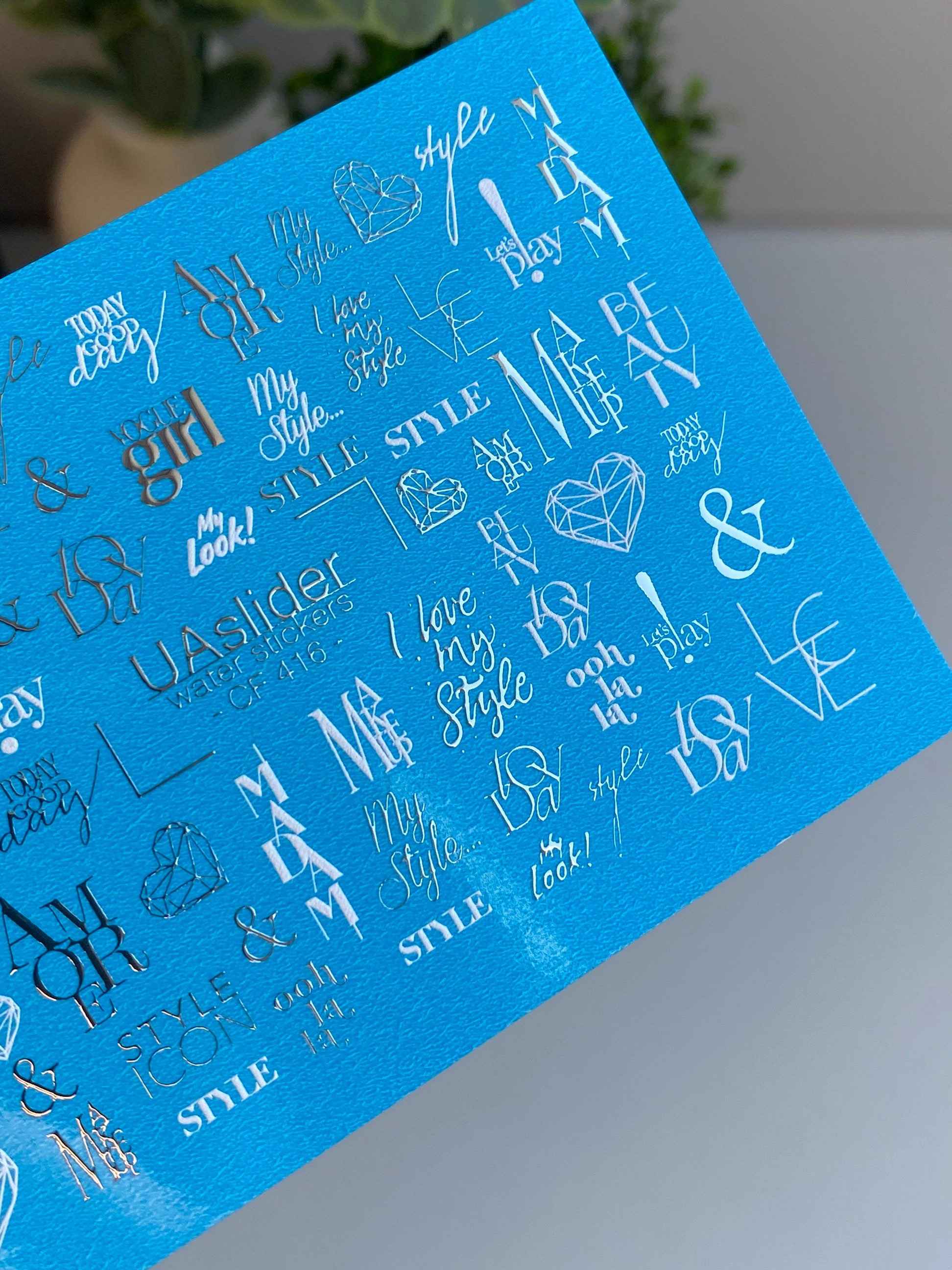 These water slide nail decals are water-activated — simply soak to apply. Cut out the chosen element before soaking; for easier application you may use warm water. Each piece applies smoothly onto the nail surface. Suitable for gel and acrylic nails.
