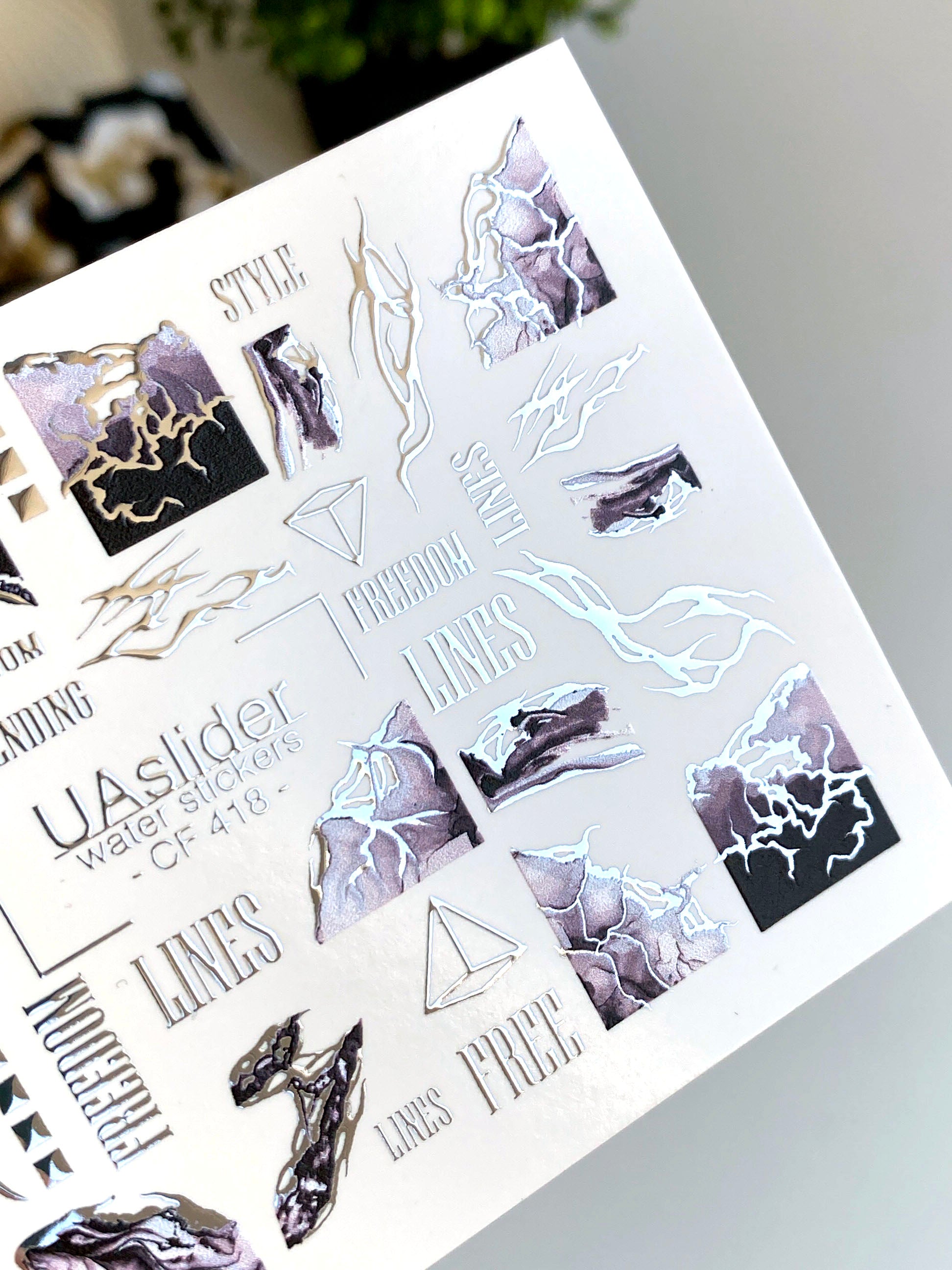 Nail Water Decal CF-418 | Marble Texture & Abstract Lines Water Slide Nail Decals | Geometric Nail ArtCF_418