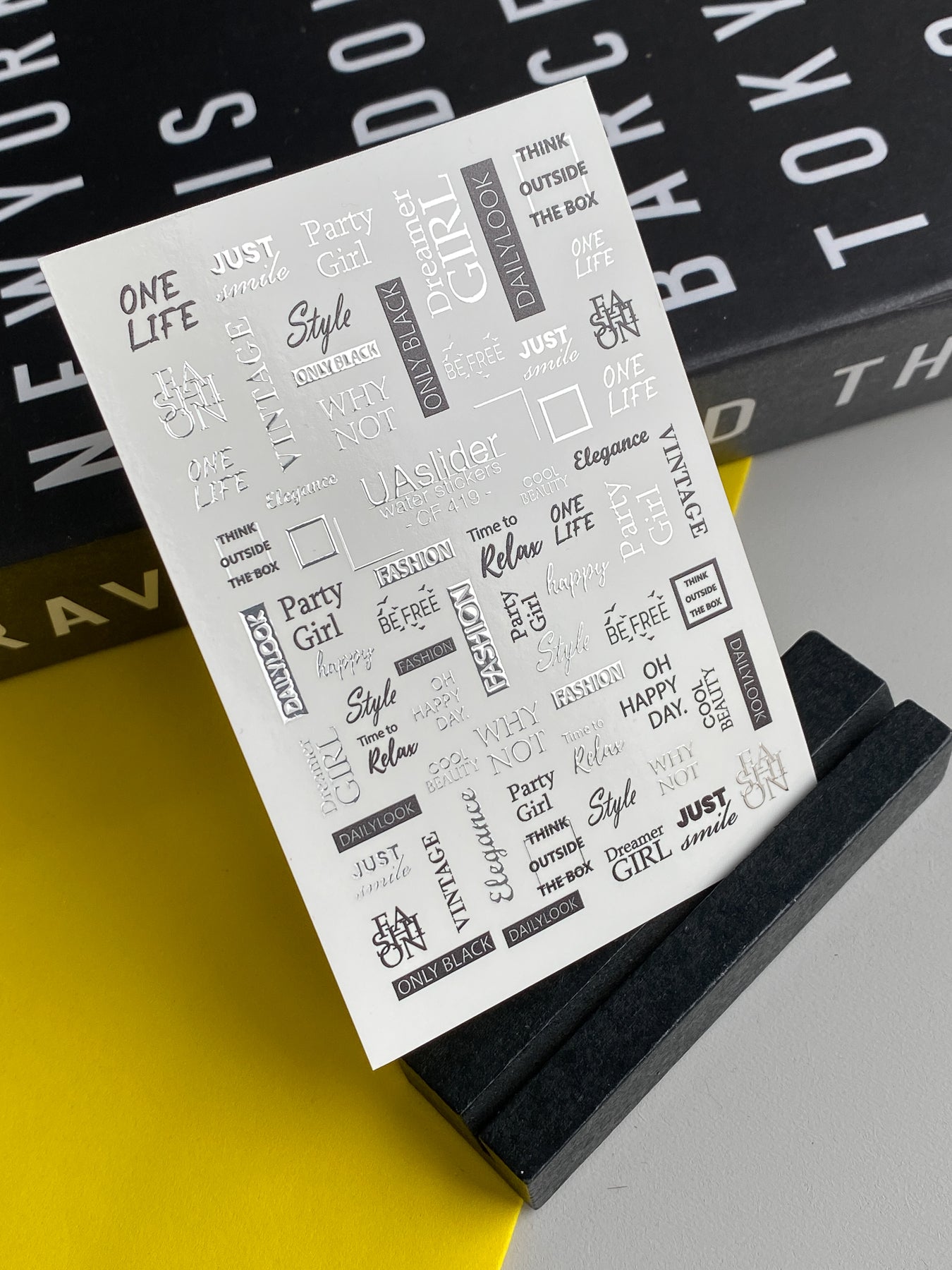 Nail Water Decal CF-419 | Fashion Quotes Water Slide Nail Decals | Black & White Typography Nail ArtCF_419