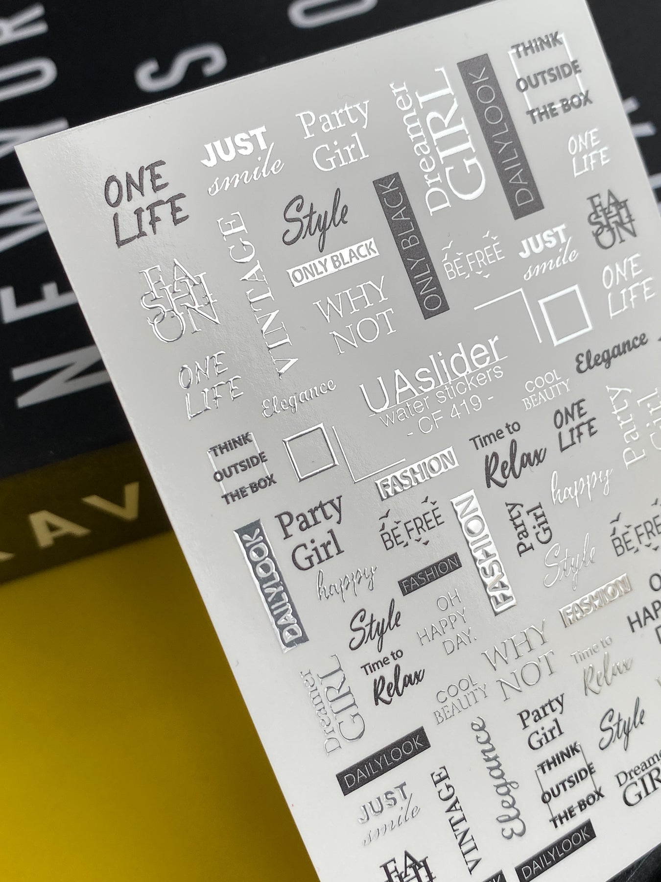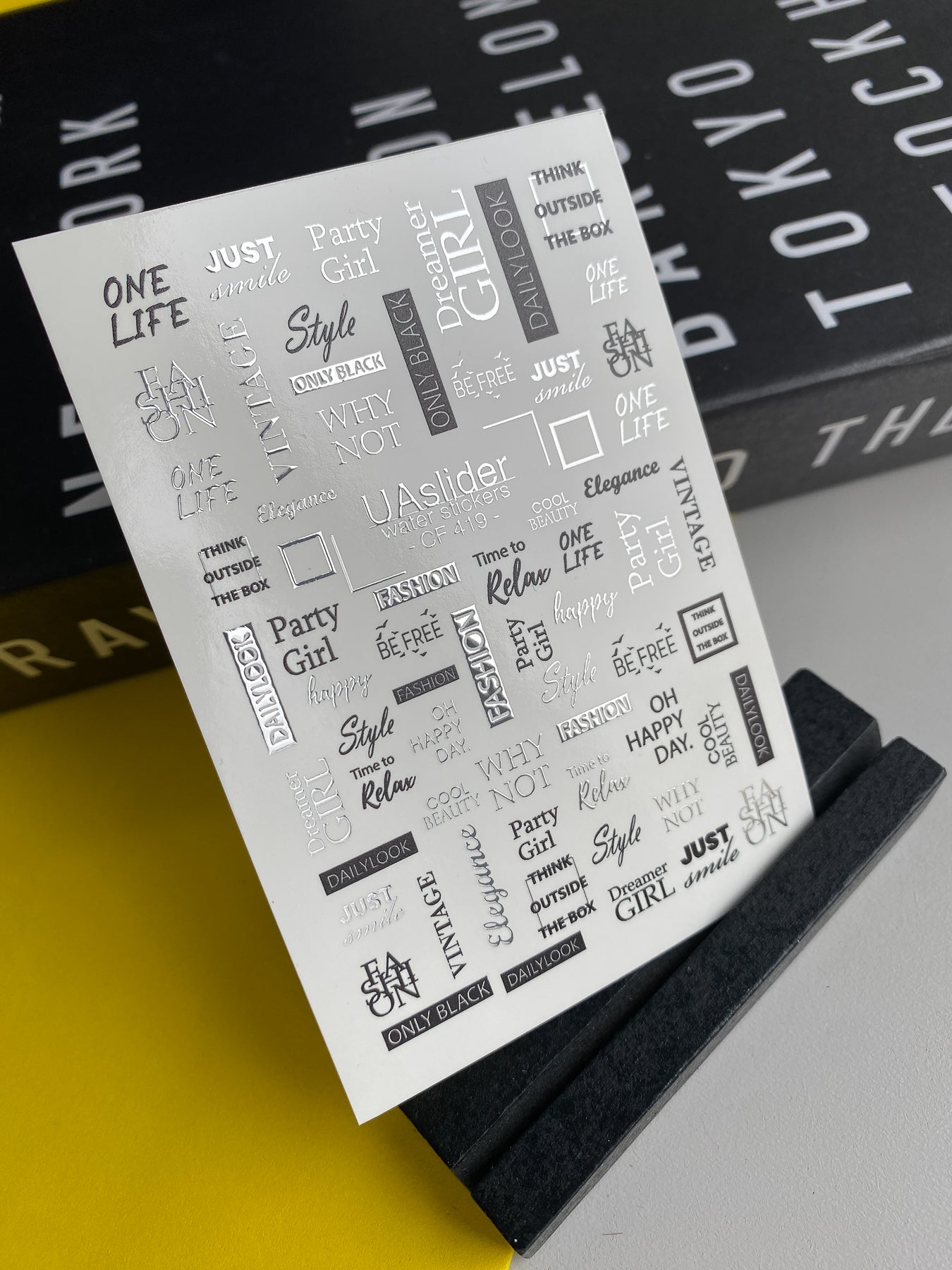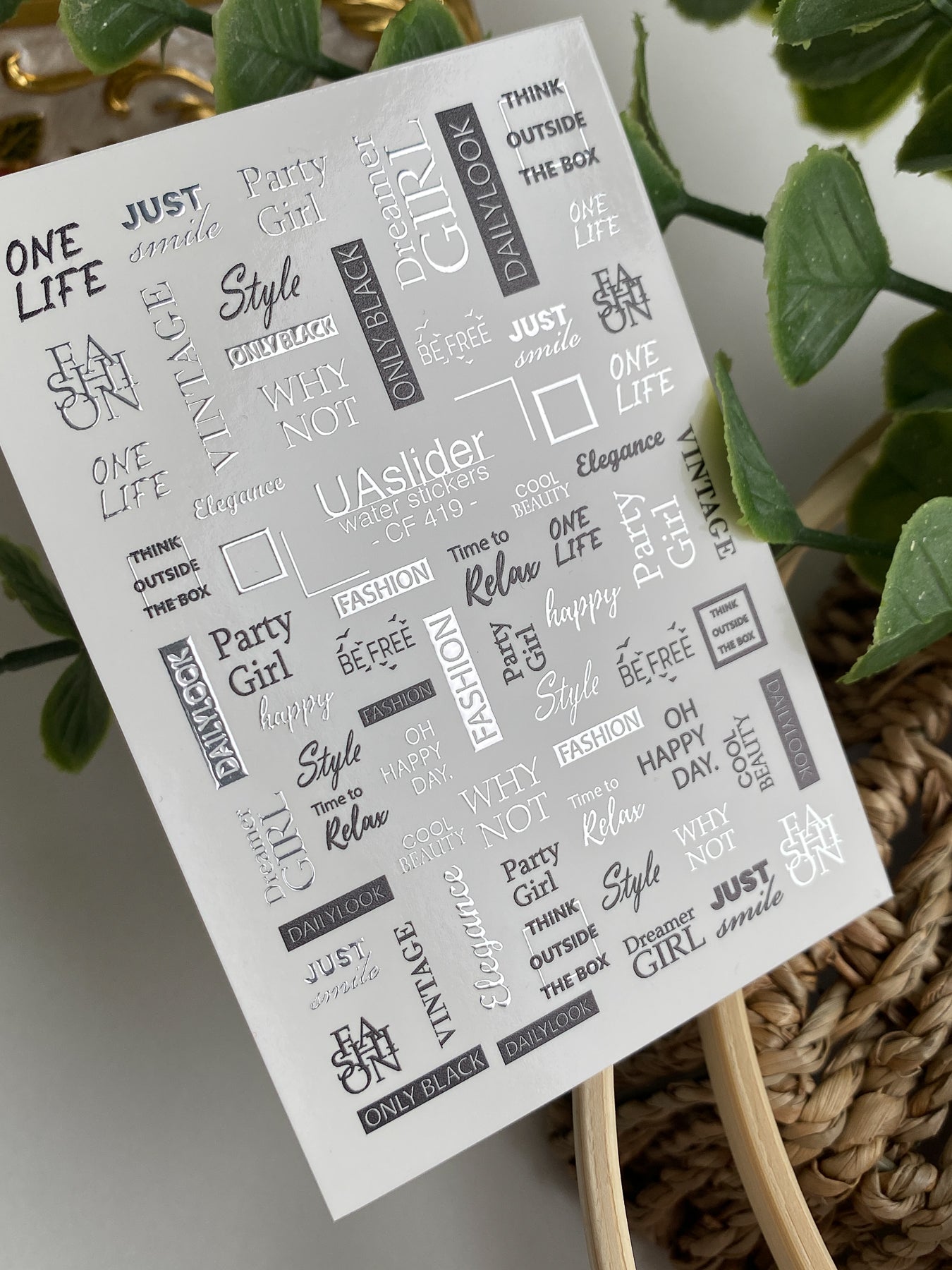 Nail Water Decal CF-419 | Fashion Quotes Water Slide Nail Decals | Black & White Typography Nail Art