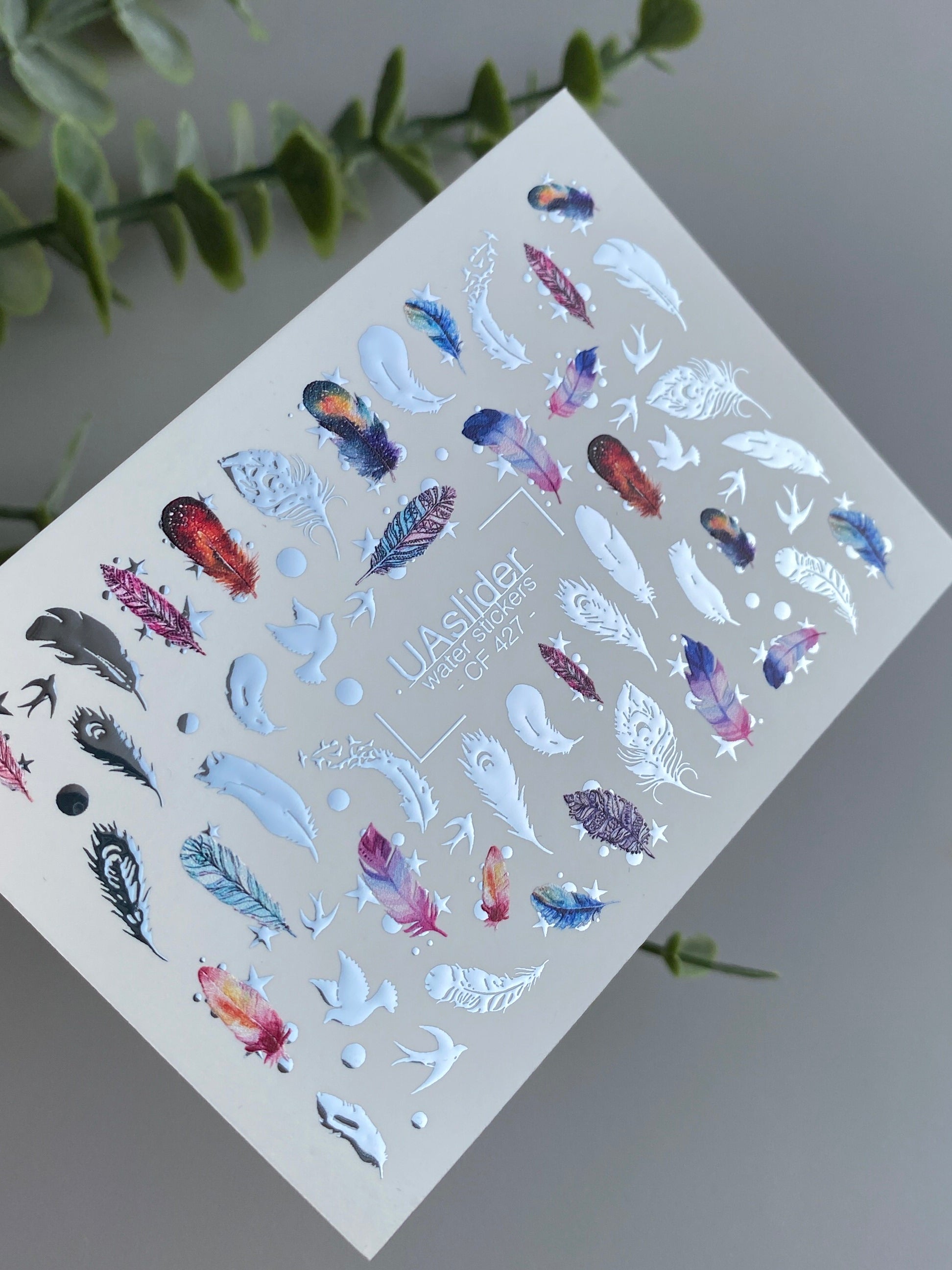 Nail Water Decal CF-427 | Colorful Feathers Water Slide Nail Decals | Birds & Boho Nail ArtCF_427