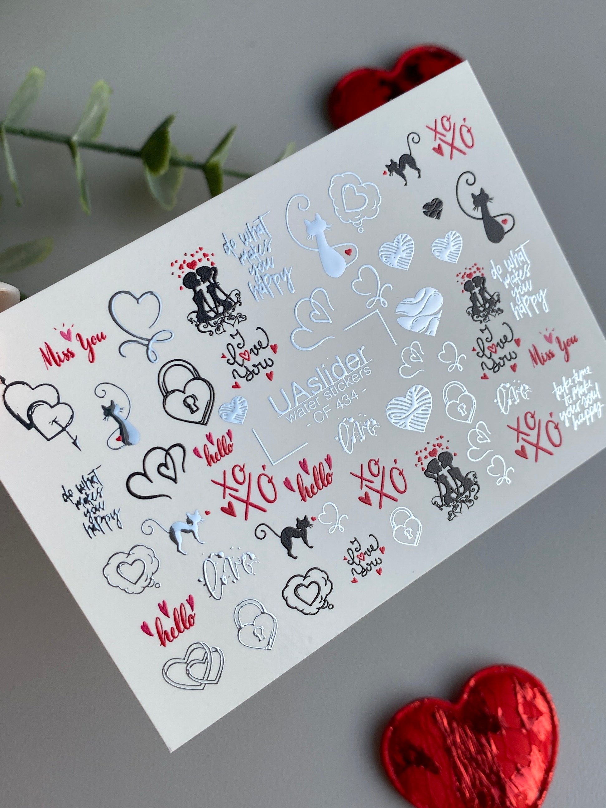 Nail Water Decal CF-434 | Romantic Cats & Hearts Water Slide Nail Decals | XO & Love Quotes Nail ArtCF_434
