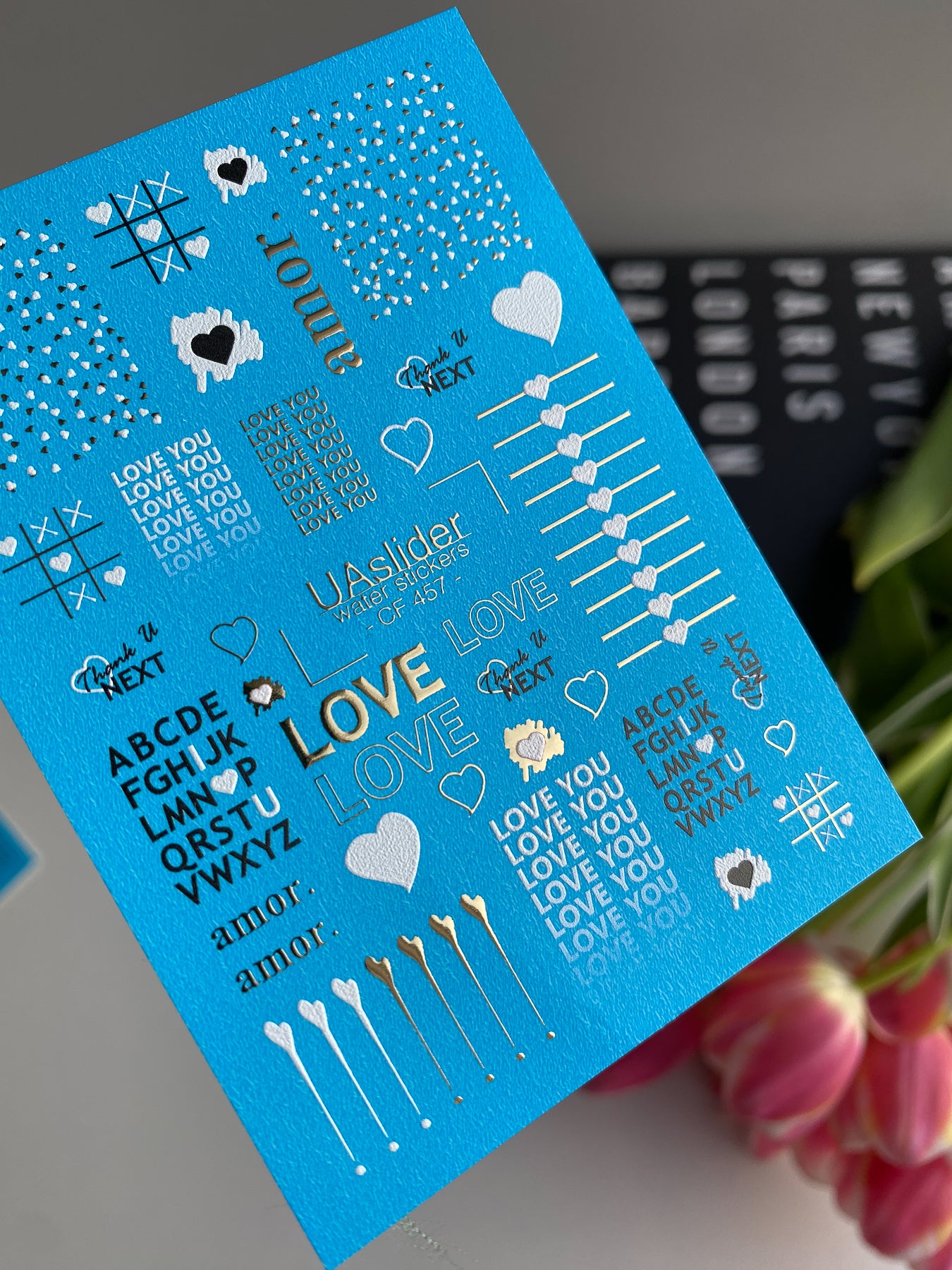 Nail Water Decal CF-457 | Love Water Slide Nail Decals | Hearts, Quotes & Alphabet in Gold & White