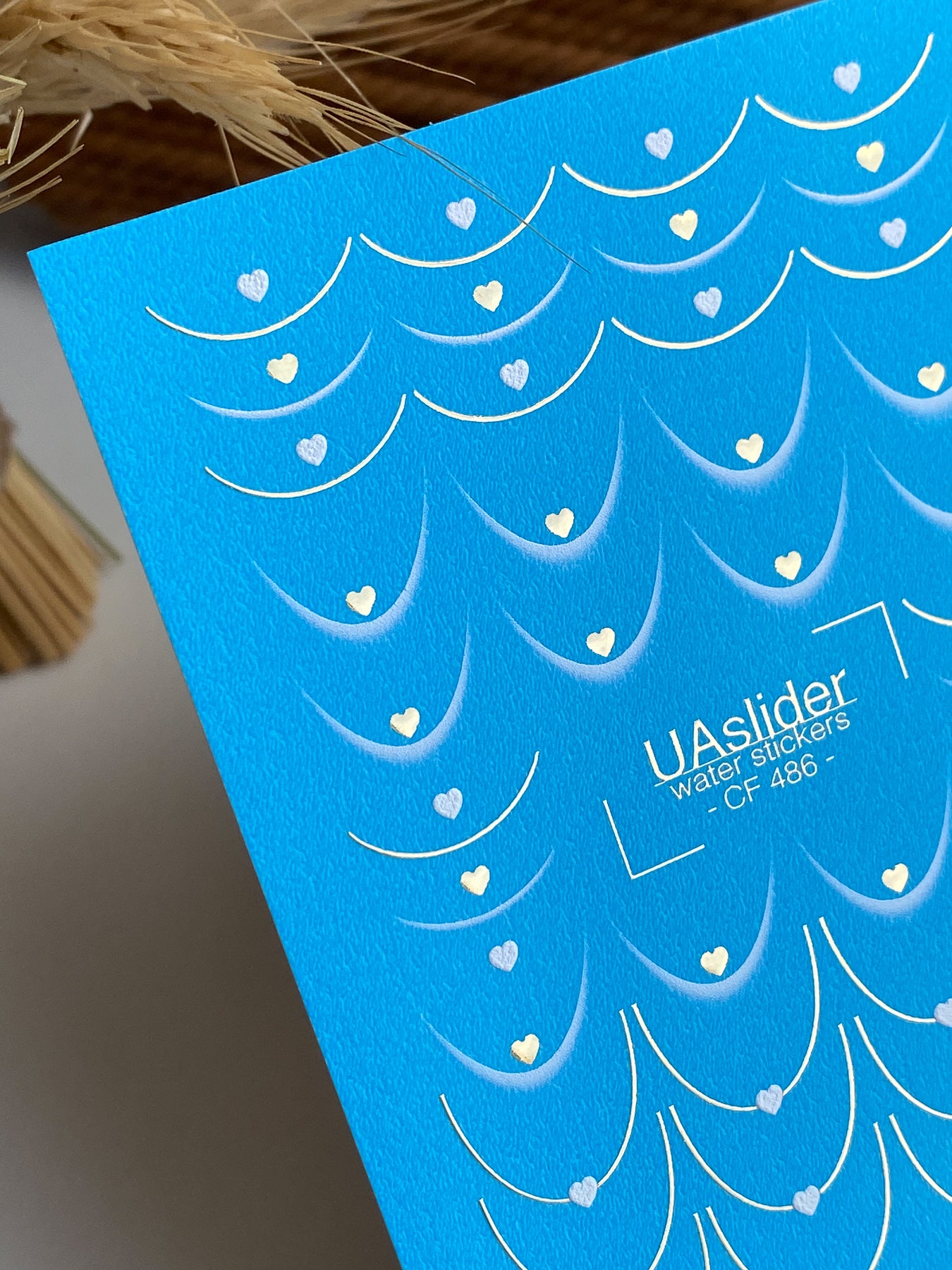 Nail Water Decal CF-486 | Blue French Nail Water Decals with Golden Hearts | Romantic DesignCF_486