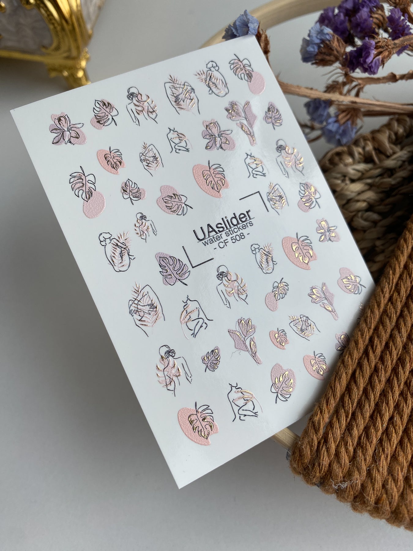 Nail Water Decal CF-508 | Water Slide Nail Decals with Abstract Line Art & Monstera Leaves | Minimal Nail ArtCF_508