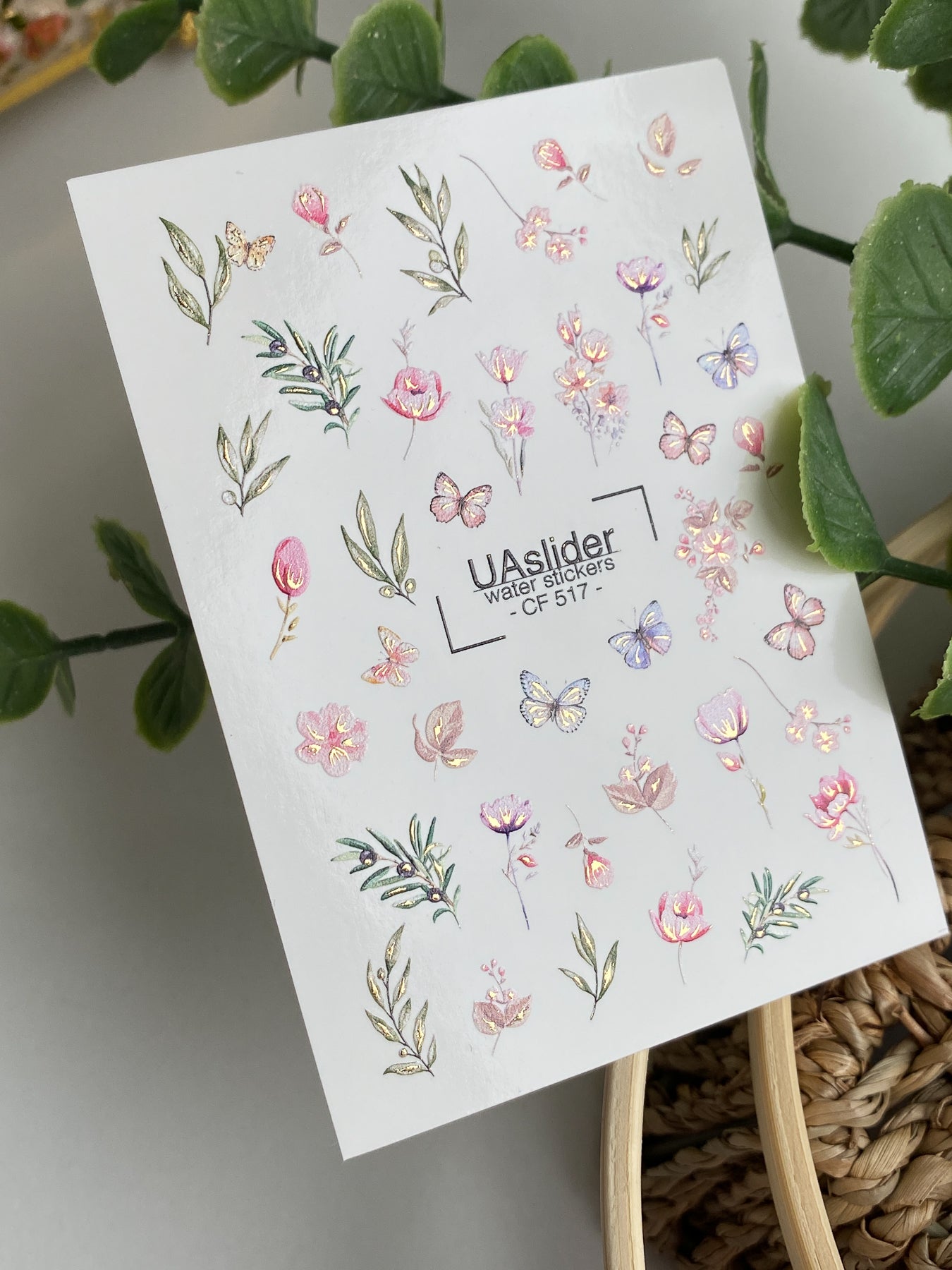 Nail Water Decal CF-517 | Water Slide Nail Decals with Pastel Flowers & Butterflies | Botanical Nail ArtCF_517