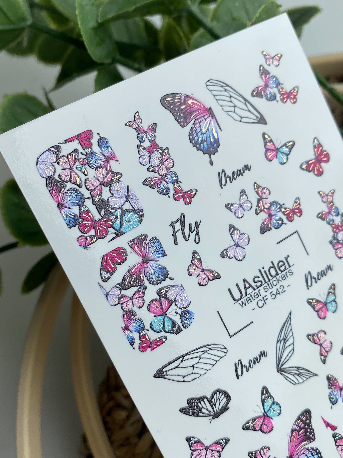Nail Water Decal CF-542 | Water Slide Nail Decals with Colorful Butterflies & Wings | Dreamy Butterfly Nail Art