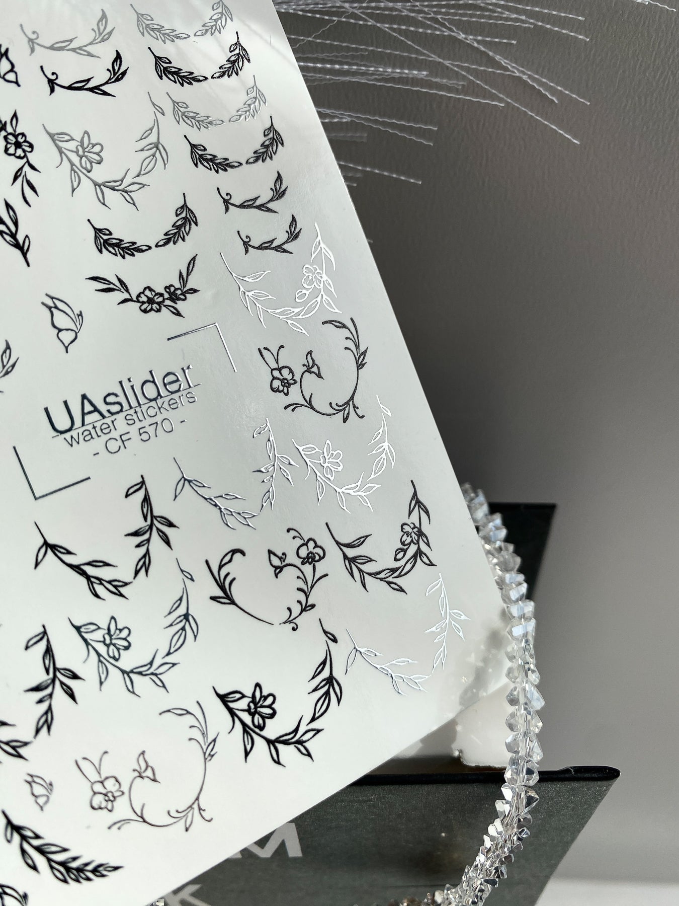 Nail Water Decal CF-570 | Water Slide Nail Decals with Minimalist Wreaths | Black and Silver Botanical Nail ArtCF_570