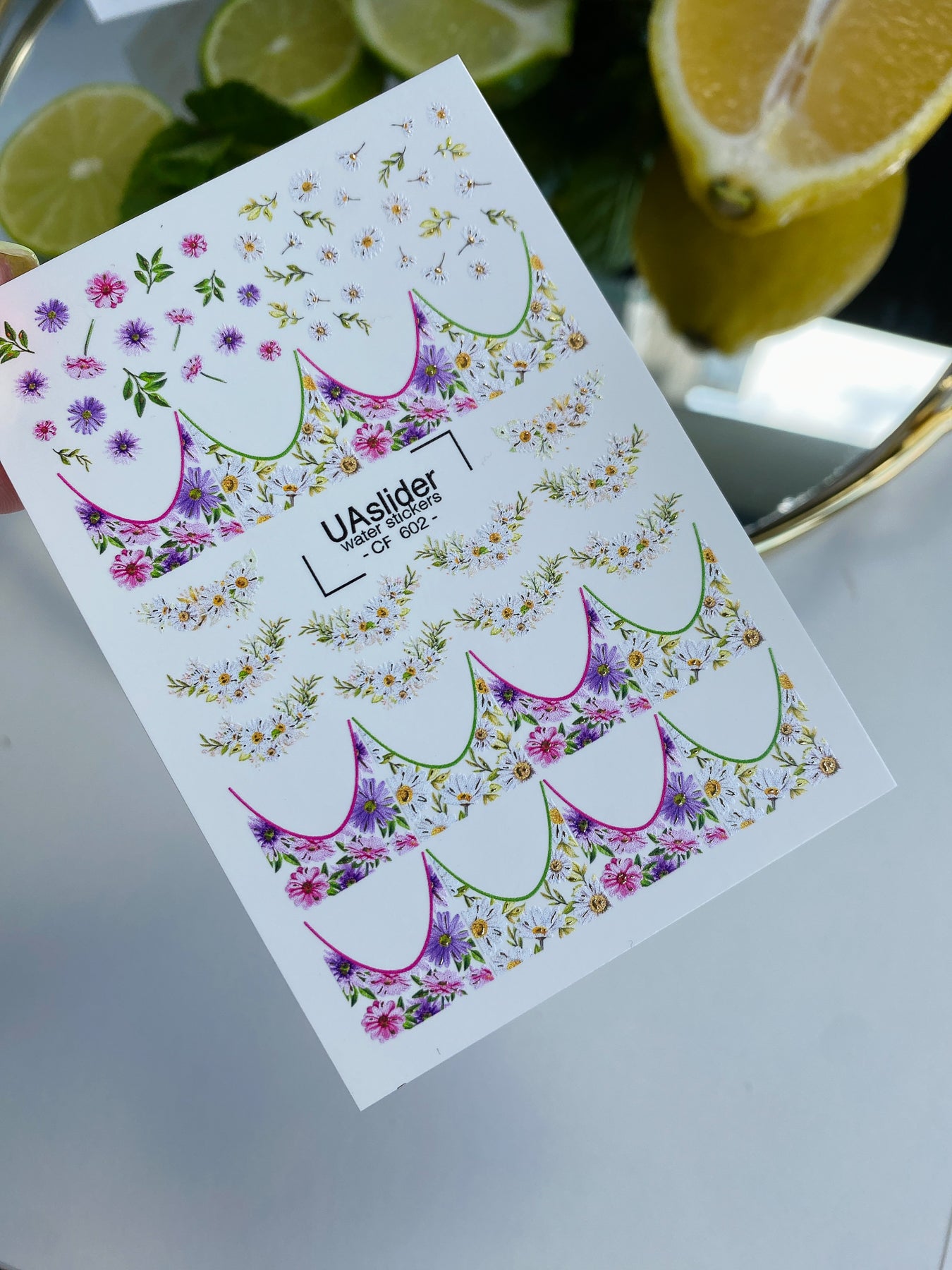 Nail Water Decal CF-602 | Water Decals for Nails | Colorful Floral French Tips with Daisies & Wildflowers