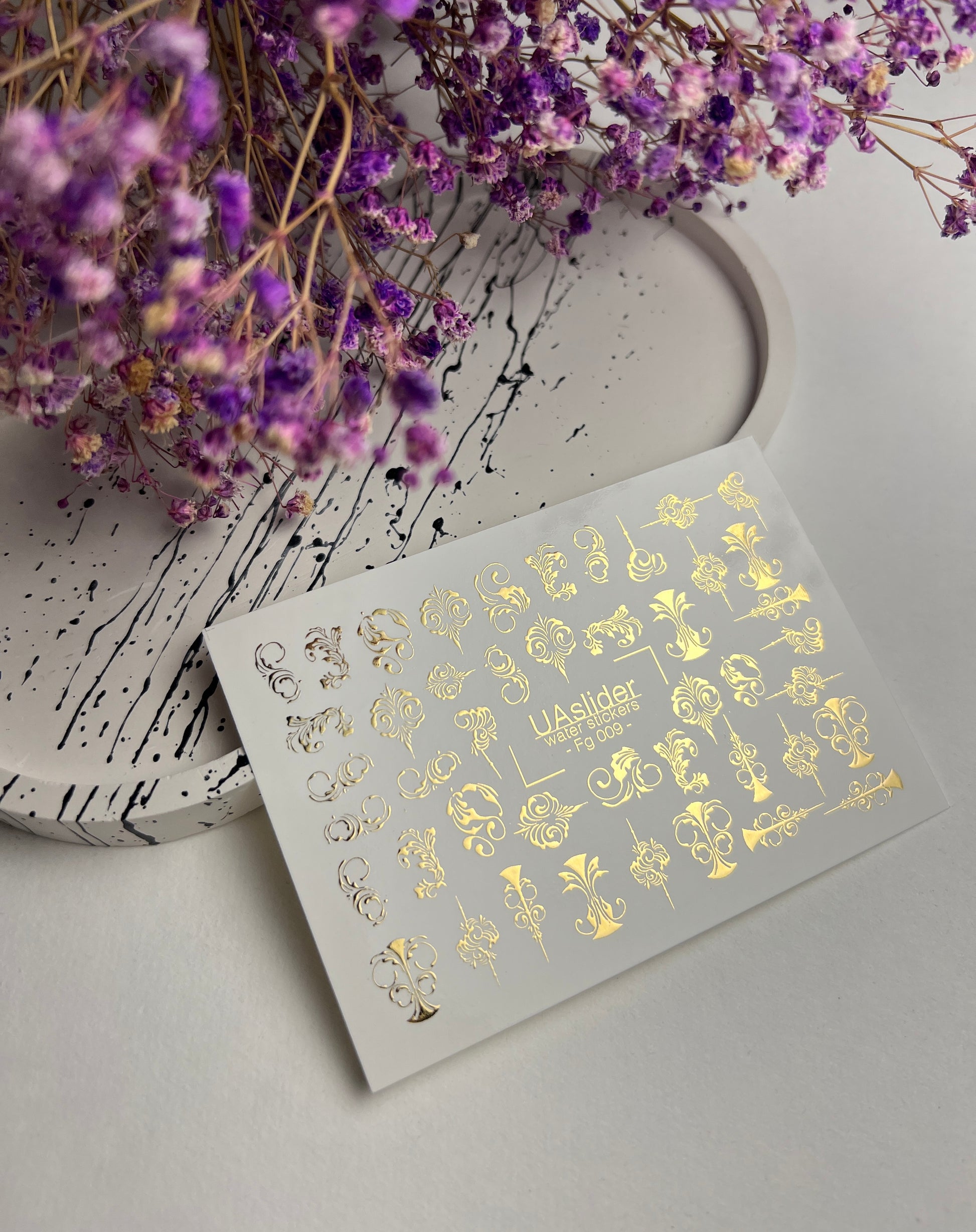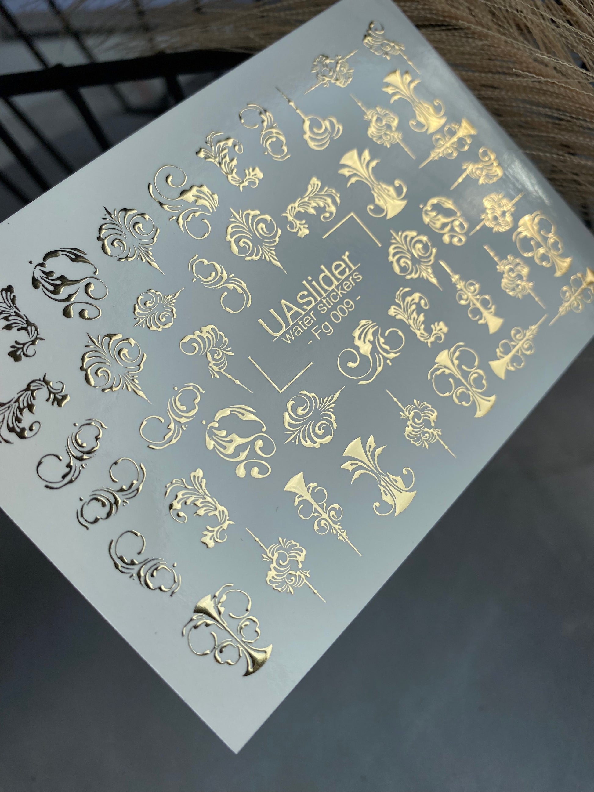 Nail Water Decal Fg-009 | Baroque Water Slide Nail Decals with Gold Foil | Ornamental Luxury Designs