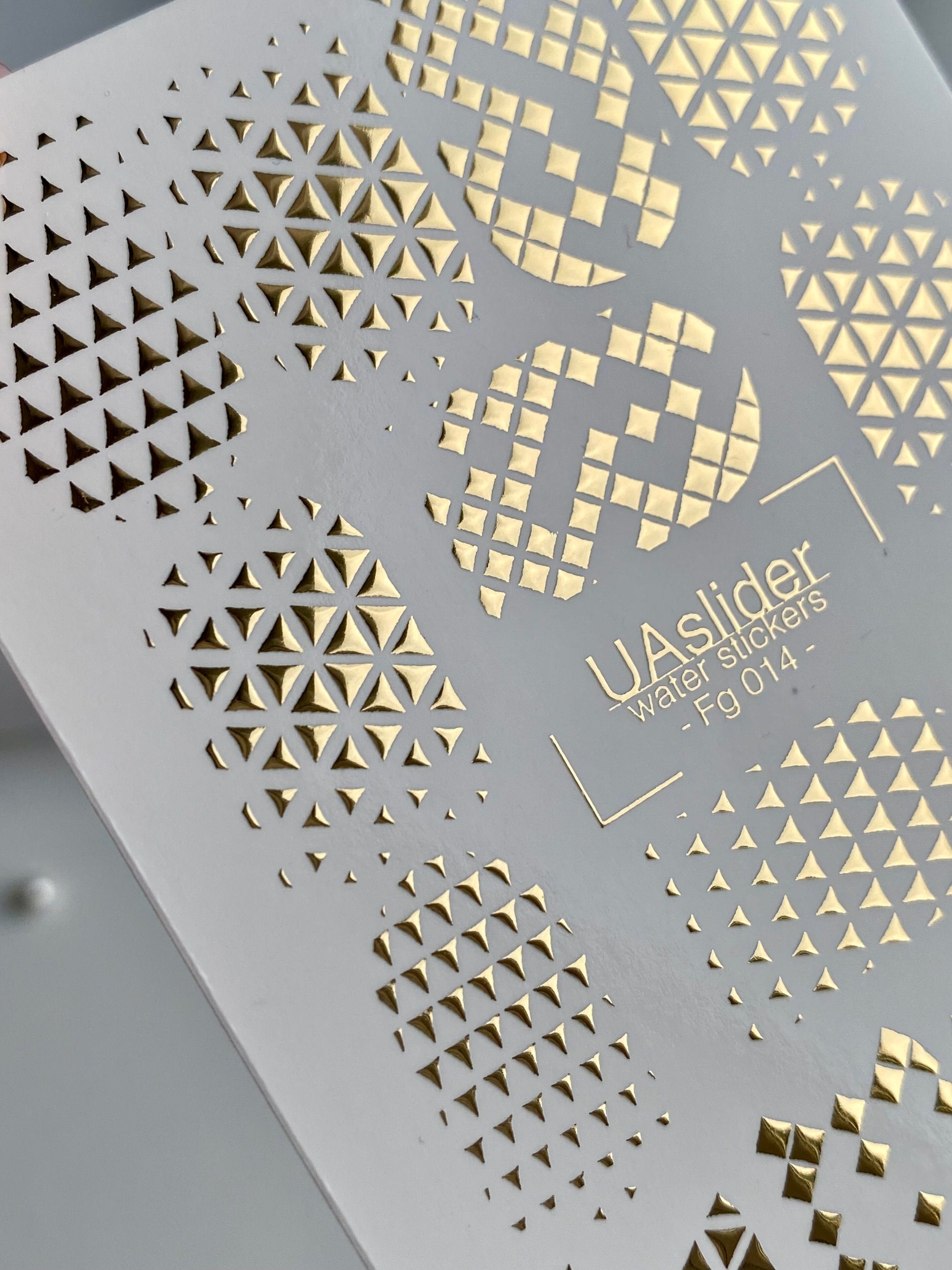 Nail Water Decal Fg-014 | Geometric Water Slide Nail Decals with Gold Foil | Triangle & Grid Patterns