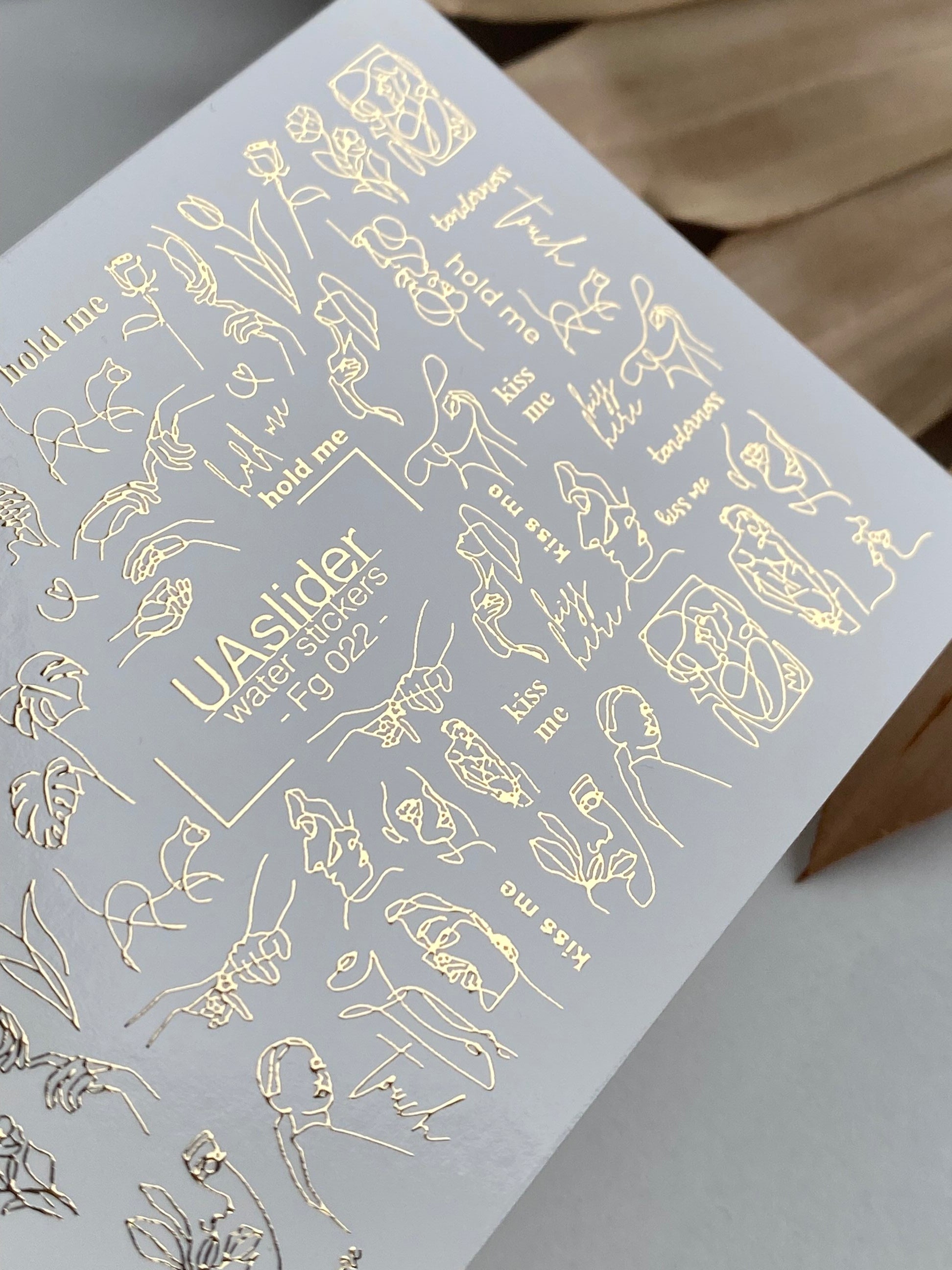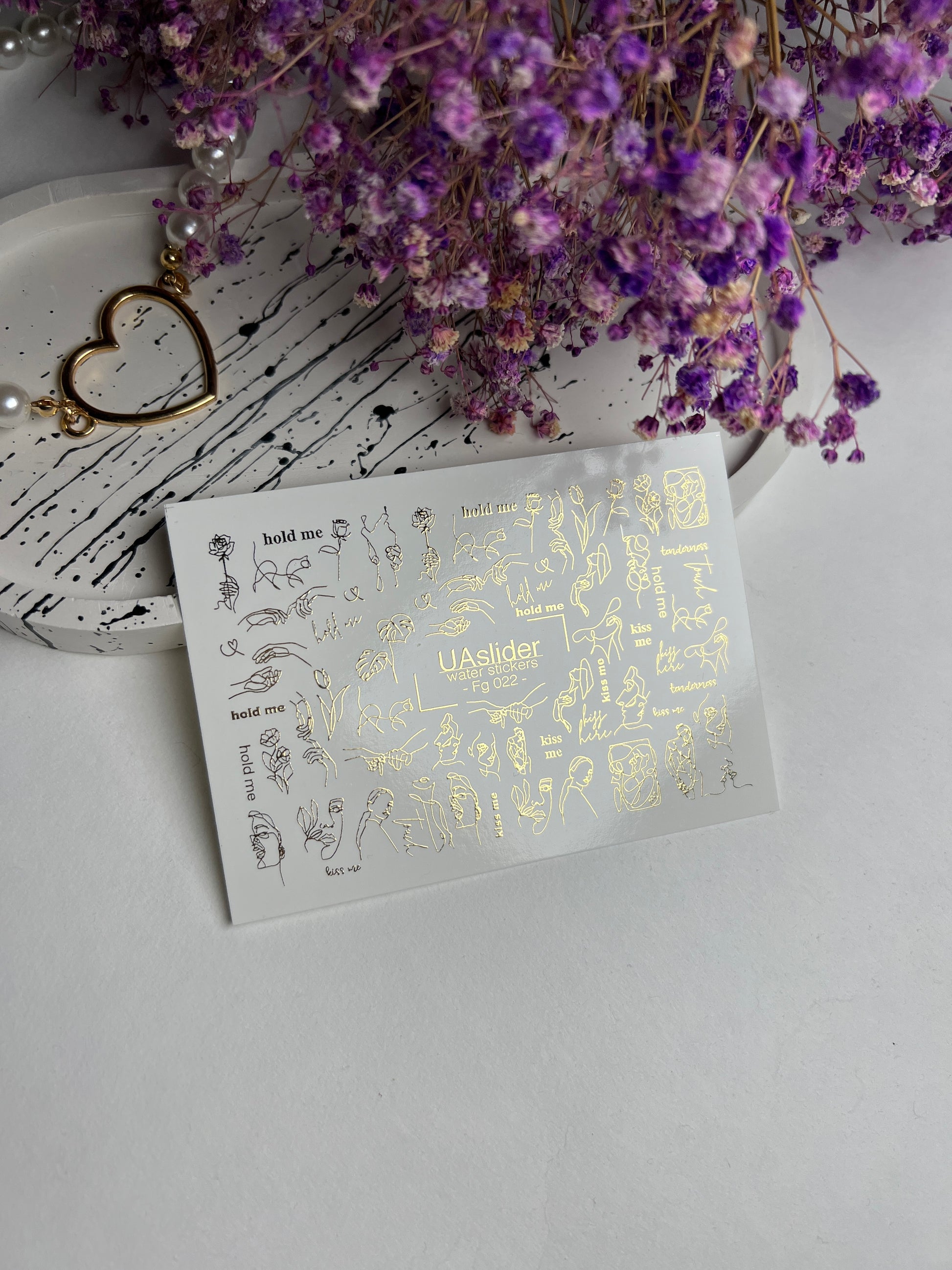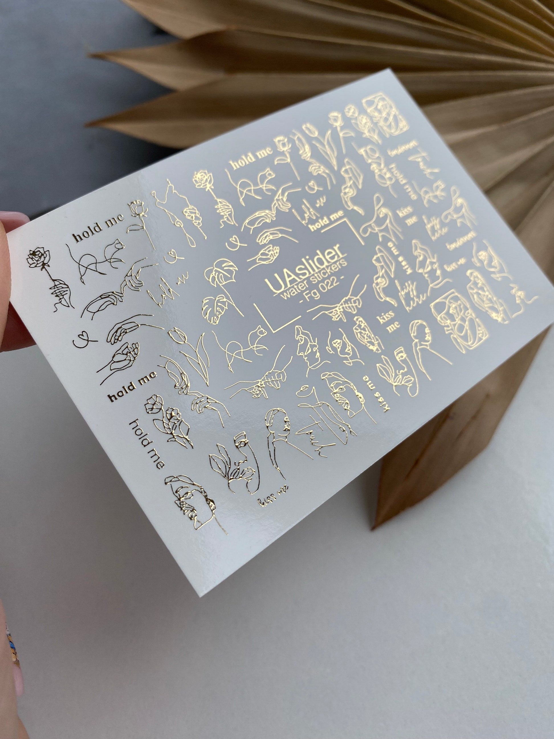 Nail Water Decal Fg-022 | Minimalist Line Art Water Slide Nail Decals with Gold Foil | Faces, Hands & WordsFg_022