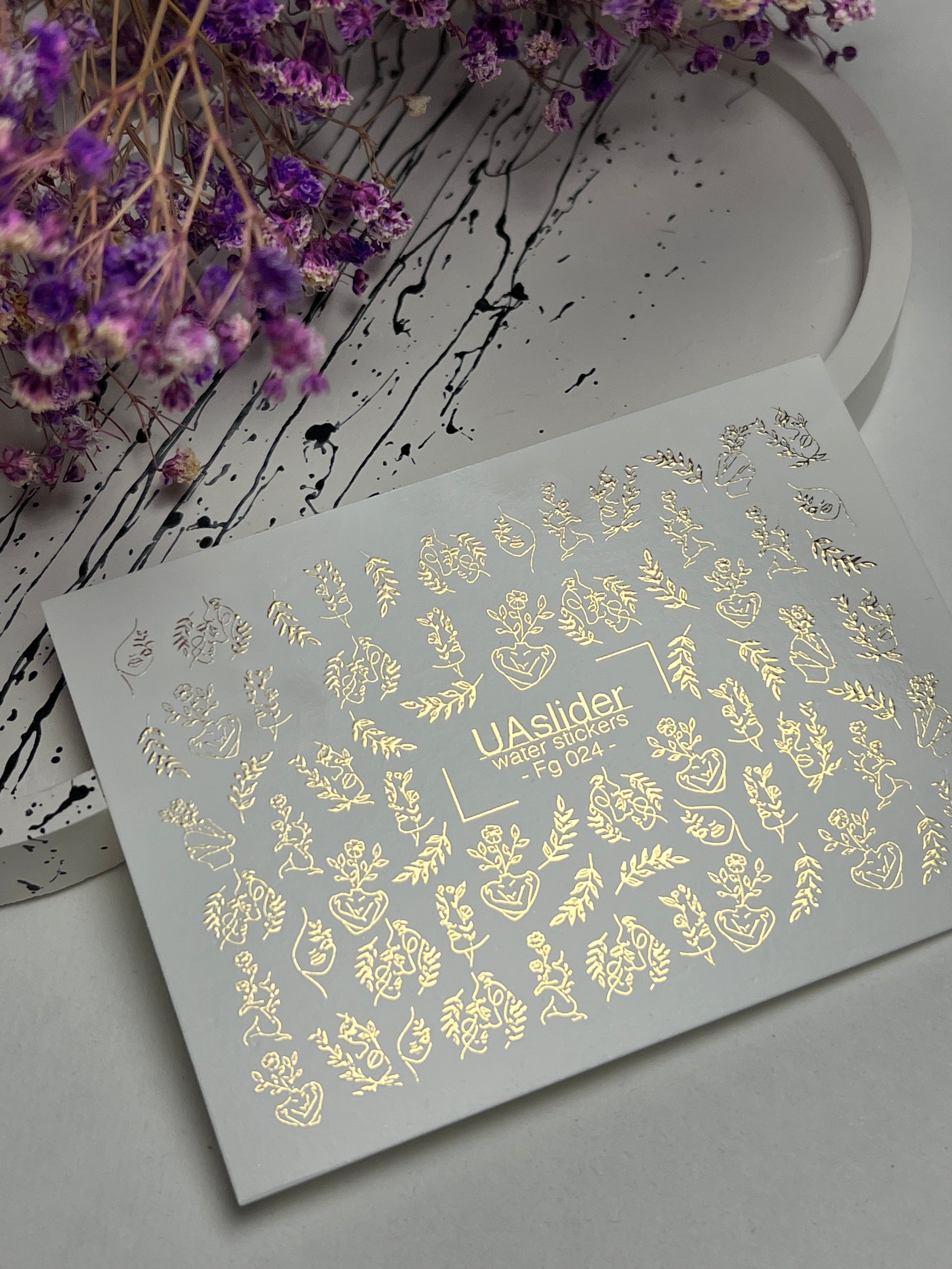 Nail Water Decal Fg-024 | Minimalist Water Slide Nail Decals with Gold Foil | Faces, Flowers & Botanical Motifs