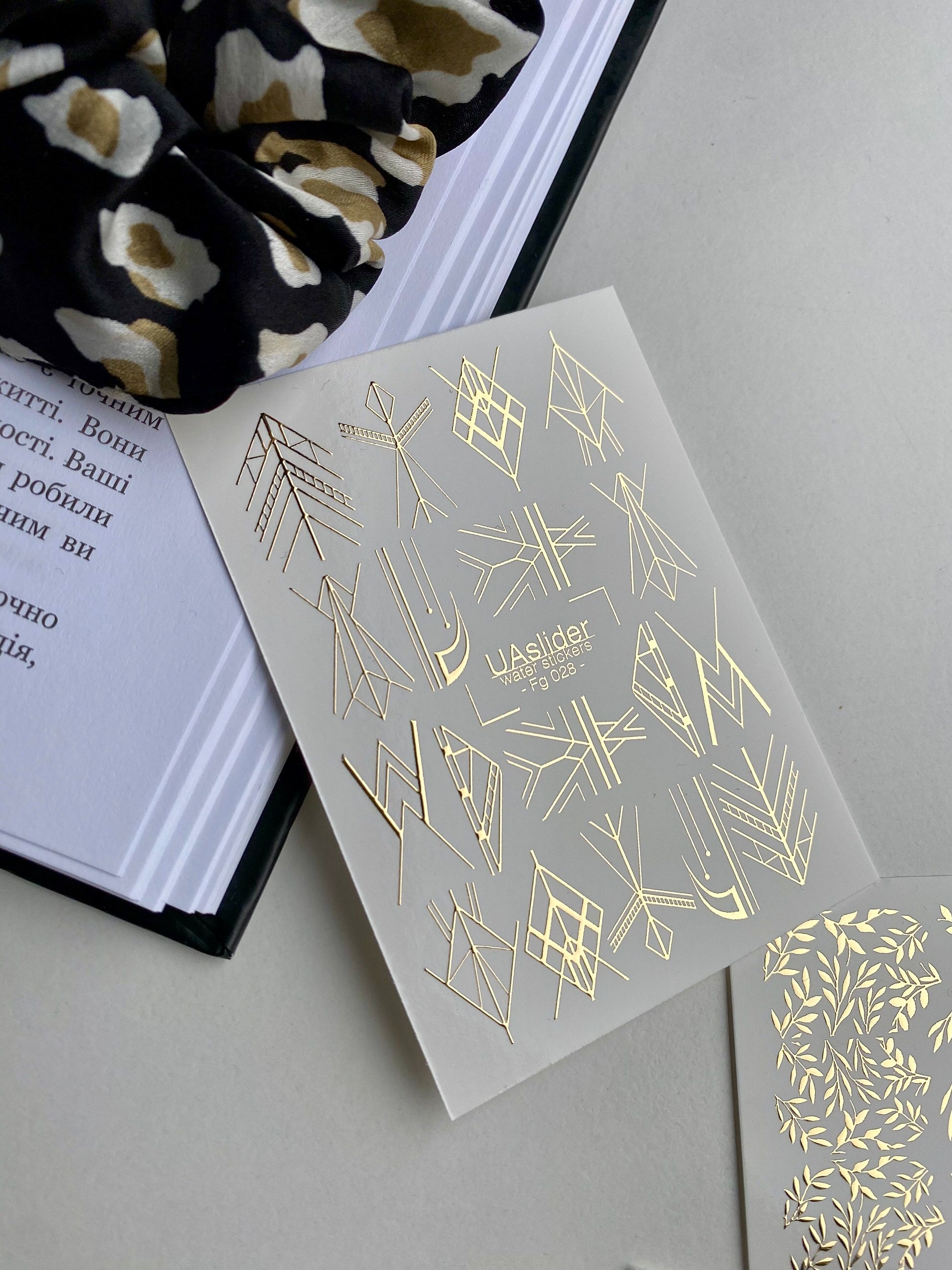 Nail Water Decal Fg-028 | Abstract Geometric Water Slide Nail Decals with Gold Foil | Futuristic Line Art Designs