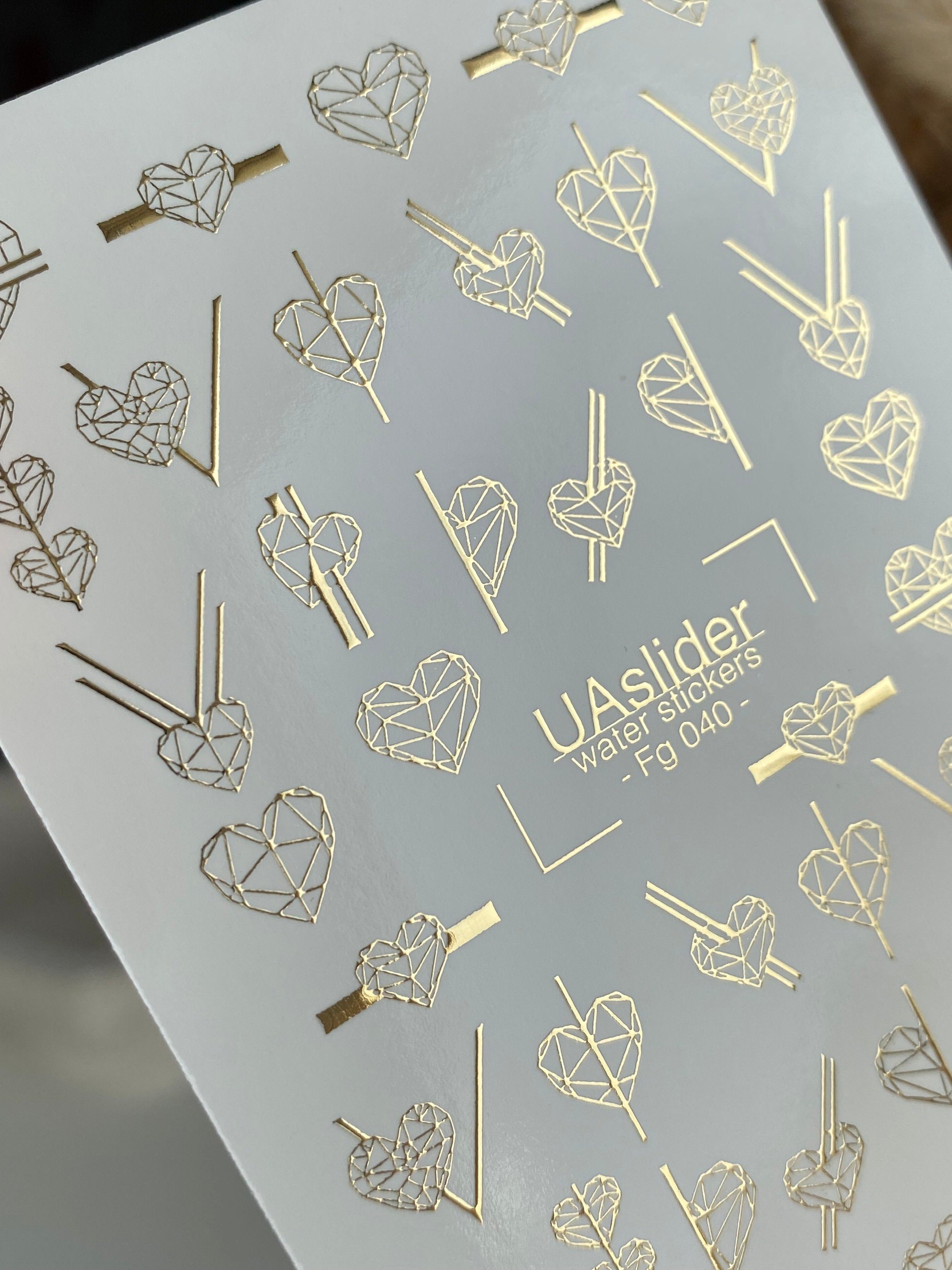 Nail Water Decal Fg-040 | Geometric Heart Water Slide Nail Decals | Gold Minimalist Nail Art