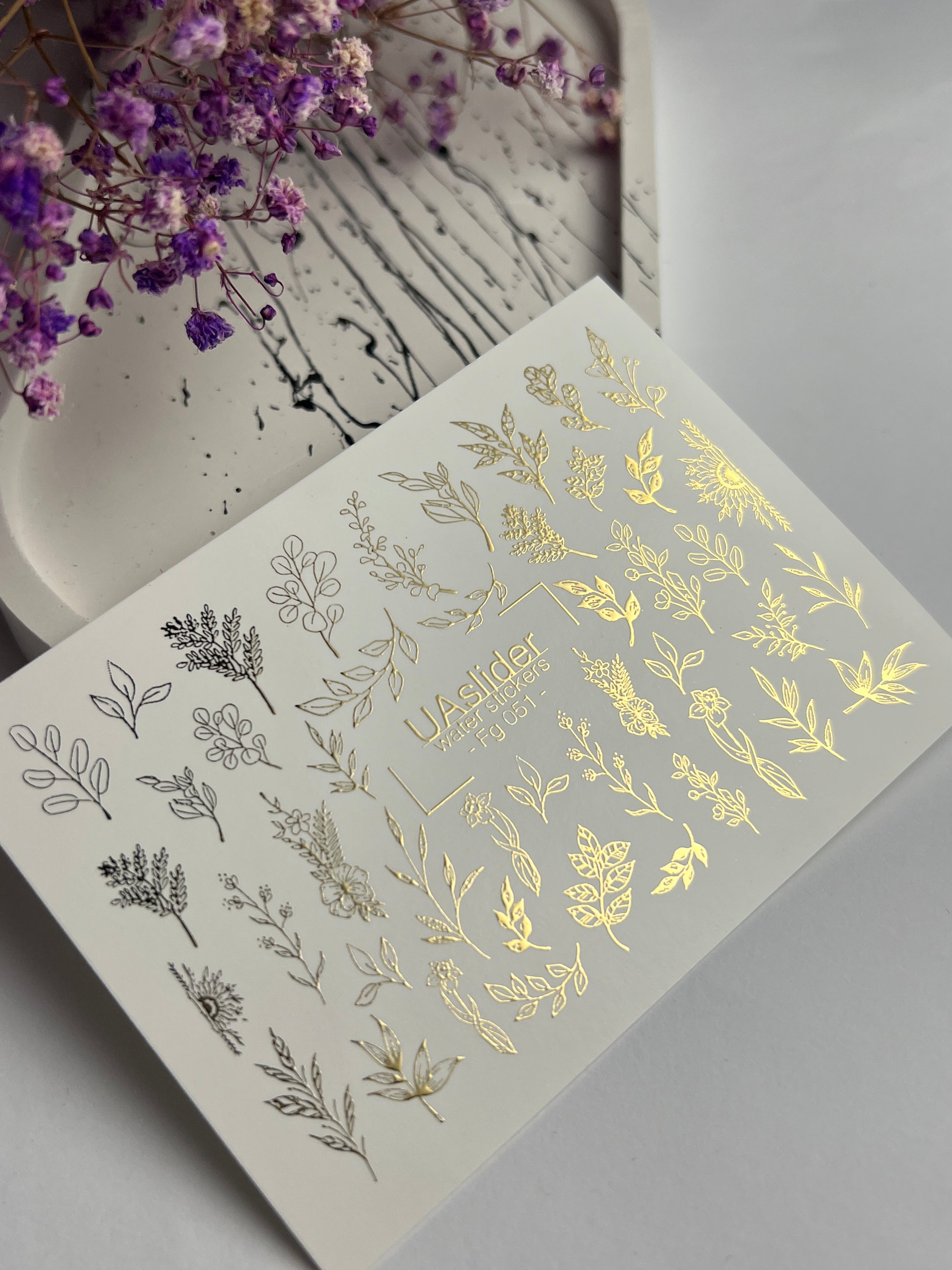 Nail Water Decal Fg-051 | Water Slide Nail Decals Gold Botanical | Floral Branches and Leaves Nail ArtFg_051