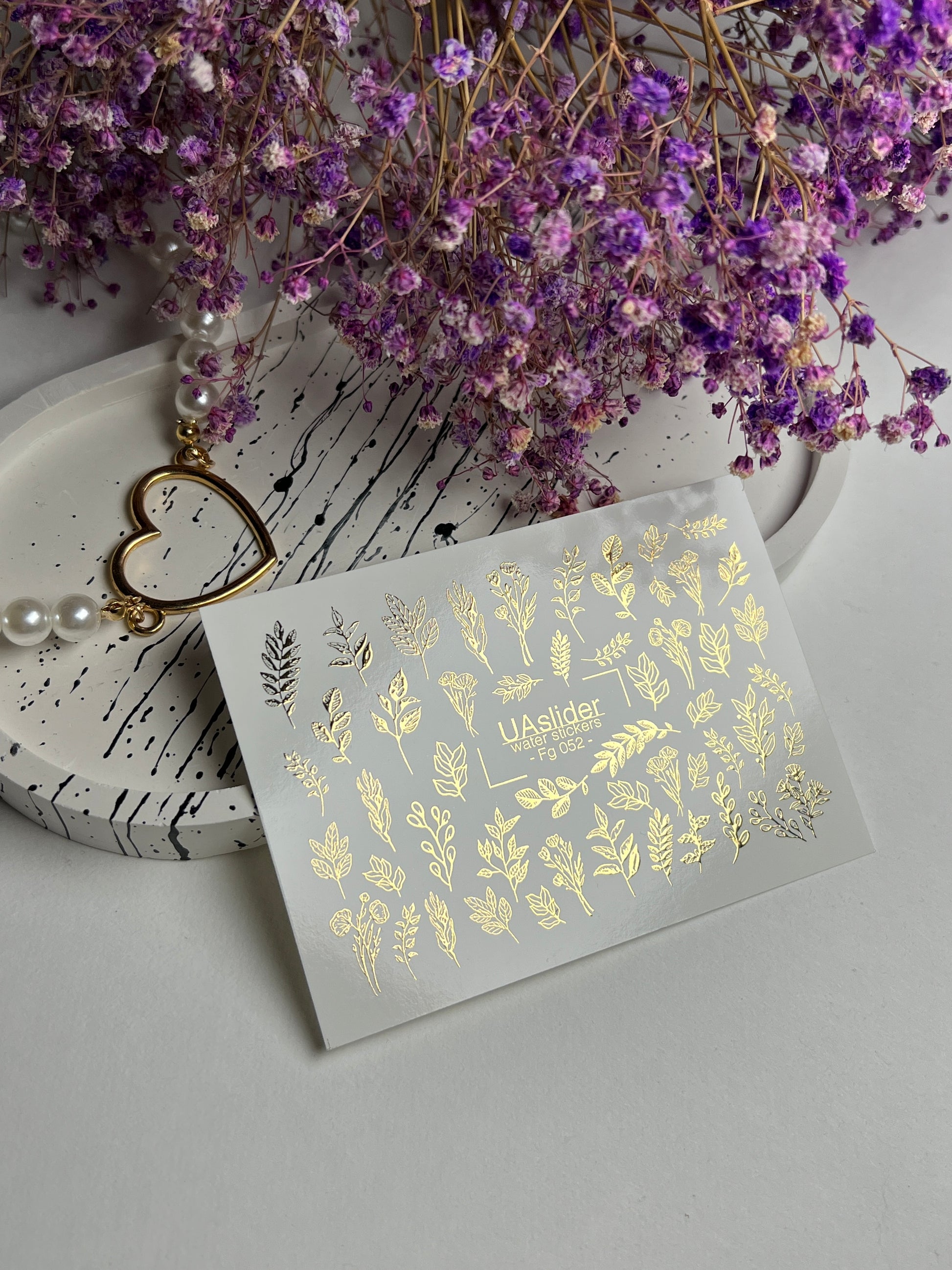 Nail Water Decal Fg-052 | Water Slide Nail Decals Gold Leaves | Botanical Branches and Elegant Nail ArtFg_052