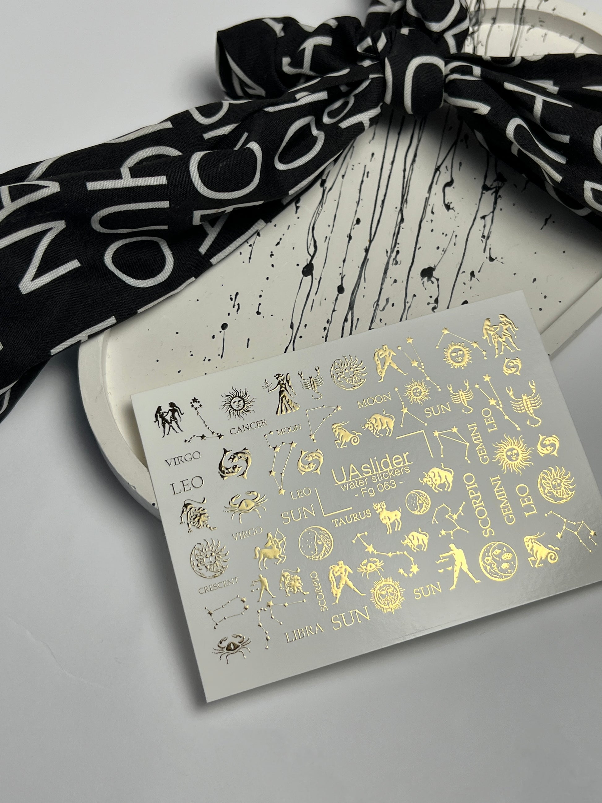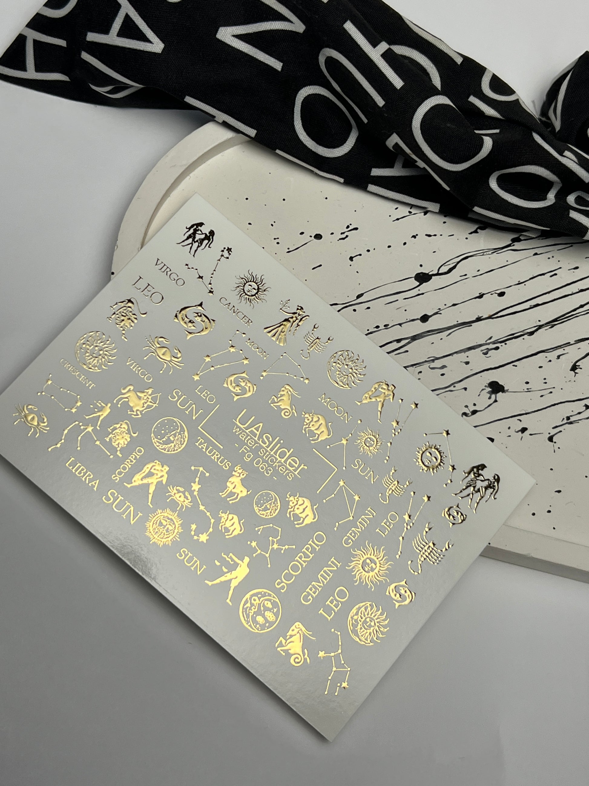 Nail Water Decal Fg-063 | Gold Foil Water Slide Nail Decals | Zodiac Signs & Constellations