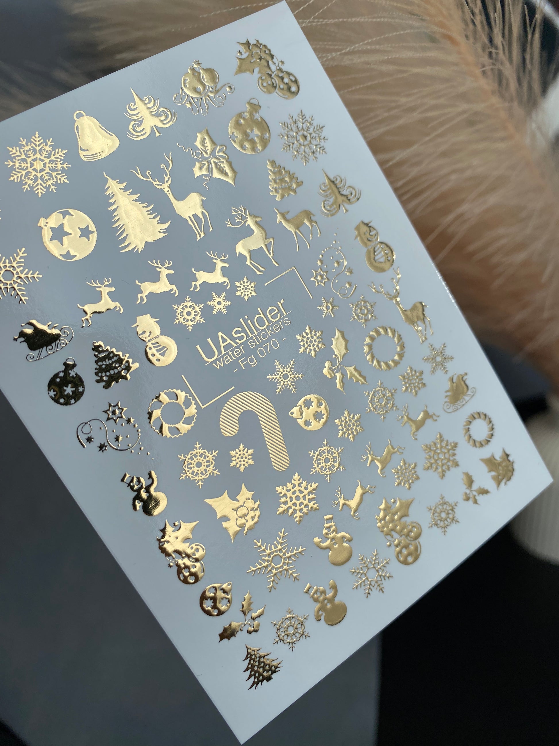 Nail Water Decal Fg-070 | Gold Foil Water Slide Nail Decals | Christmas Snowflakes & ReindeerFg_070