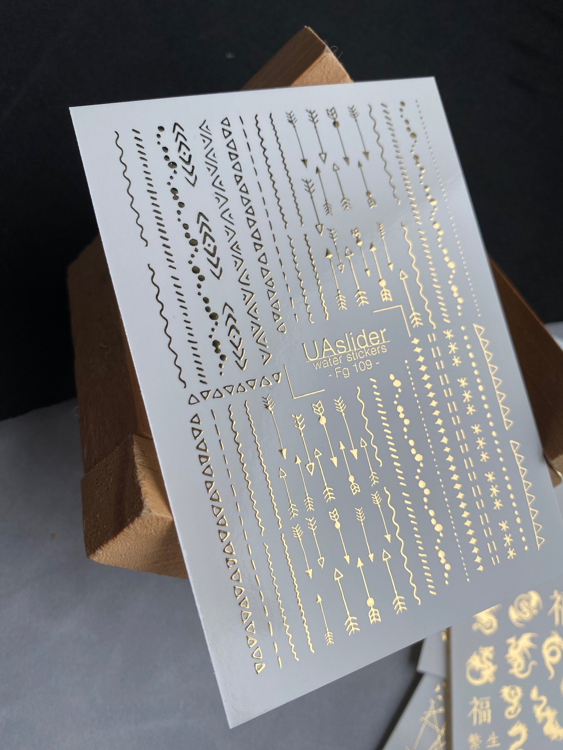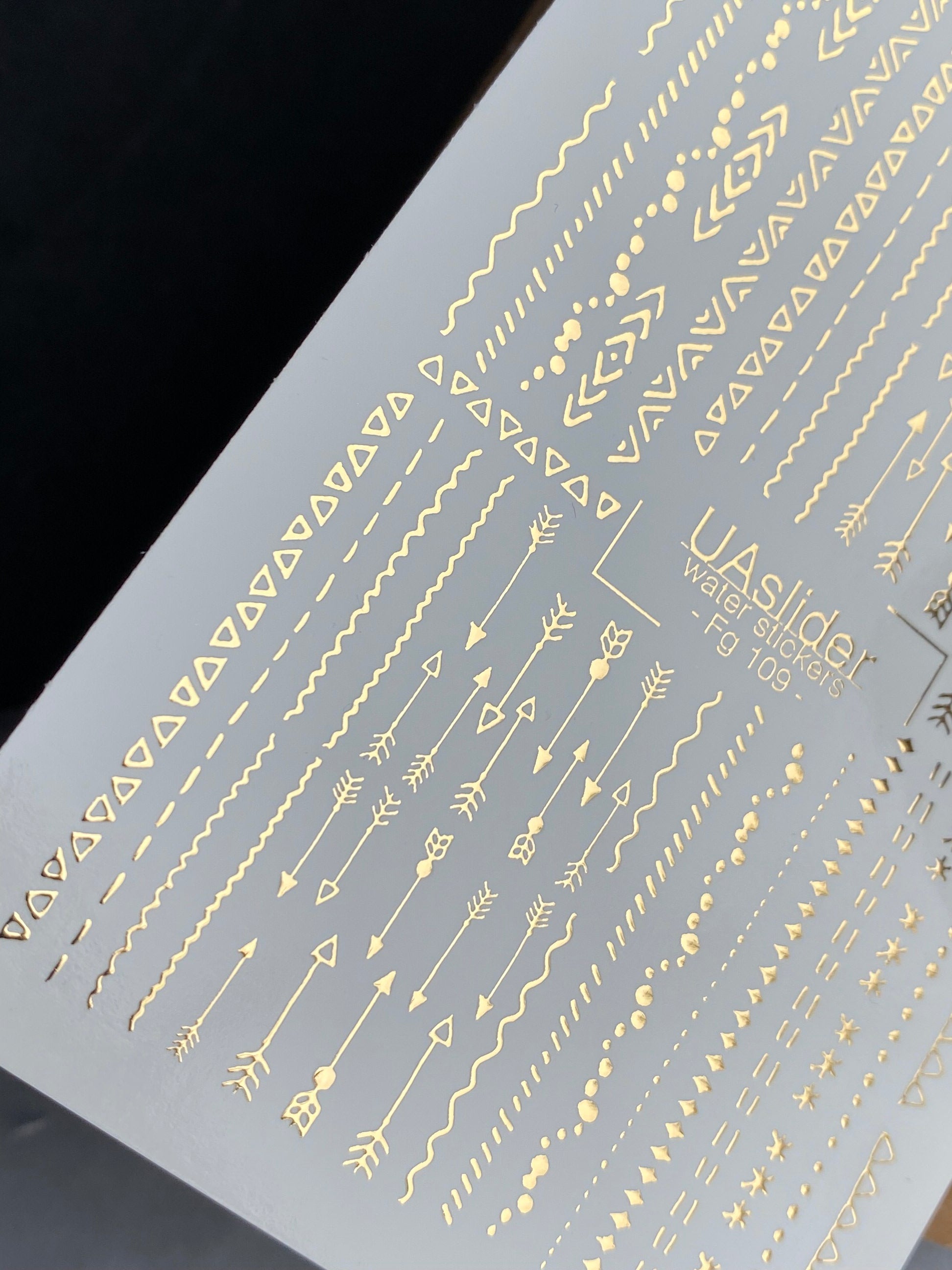 Nail Water Decal Fg-109 | Water Slide Nail Decals with Gold Lines & Arrows | Geometric PatternsFg_109
