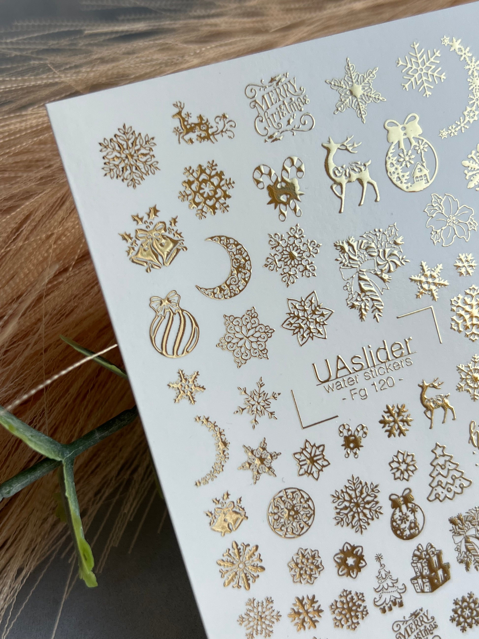Nail Water Decal Fg-120 | Water Slide Nail Decals with Gold Christmas Designs | Holiday MagicFg_120