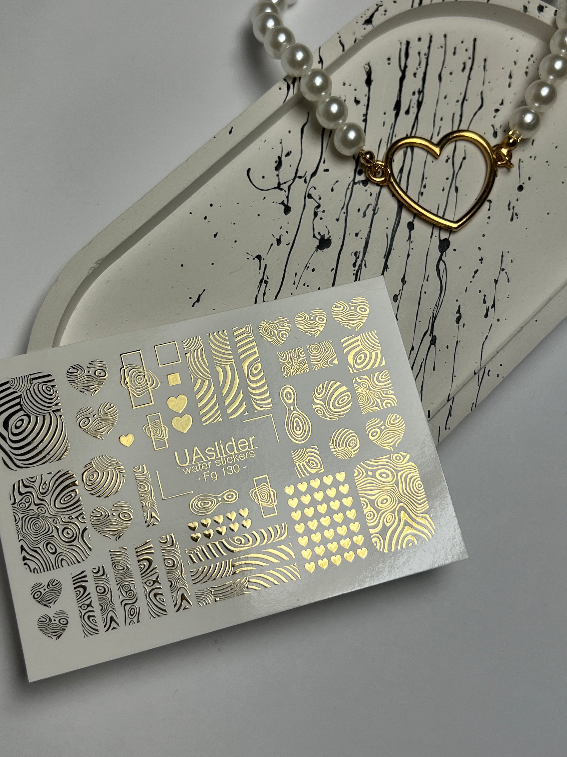 Nail Water Decal Fg-130 | Water Slide Nail Decals with Gold Abstract Patterns | Modern Geometric Nail ArtFg_130