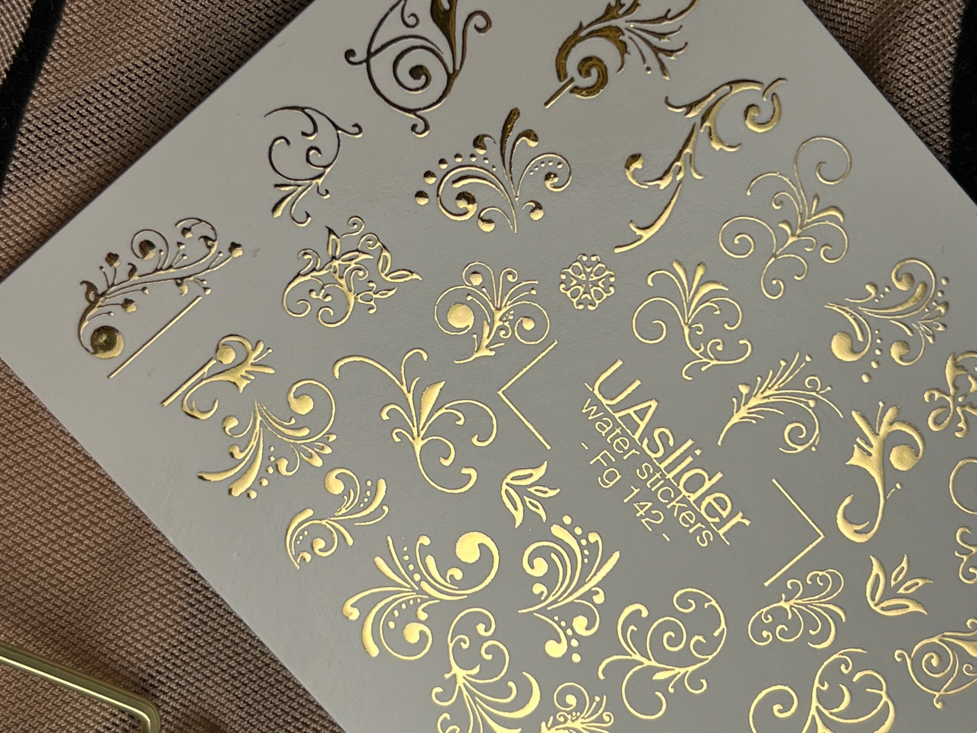 Nail Water Decal Fg-142 | Water Slide Nail Decals with Gold Swirls and Ornaments | Elegant Nail ArtFg_142