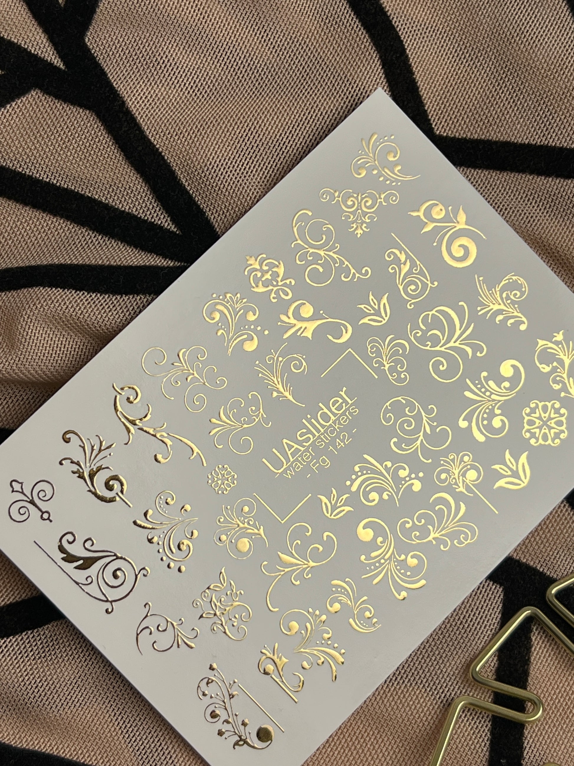 Nail Water Decal Fg-142 | Water Slide Nail Decals with Gold Swirls and Ornaments | Elegant Nail Art