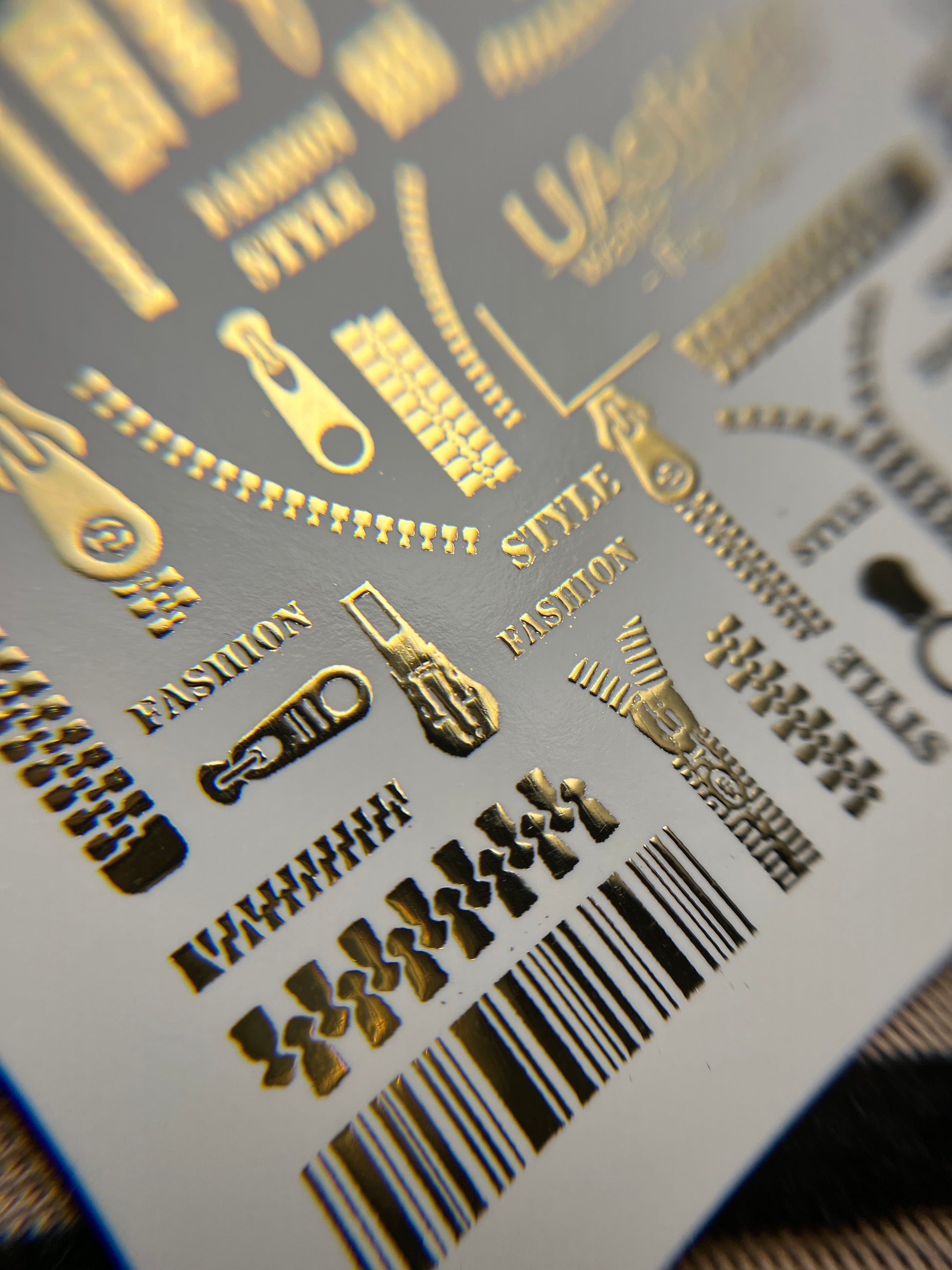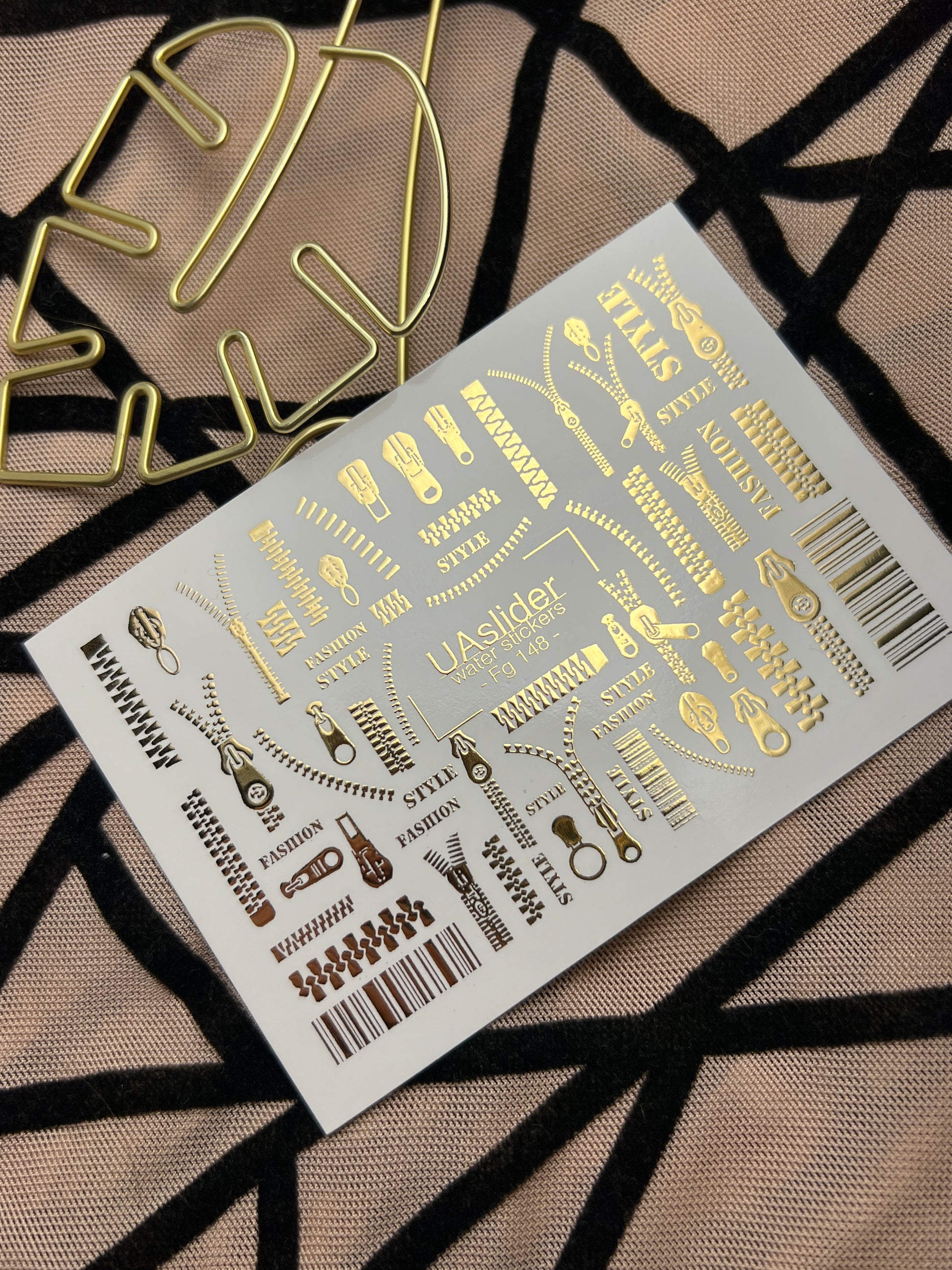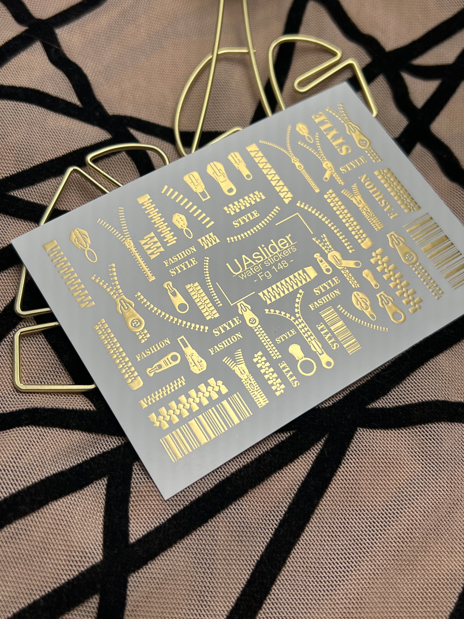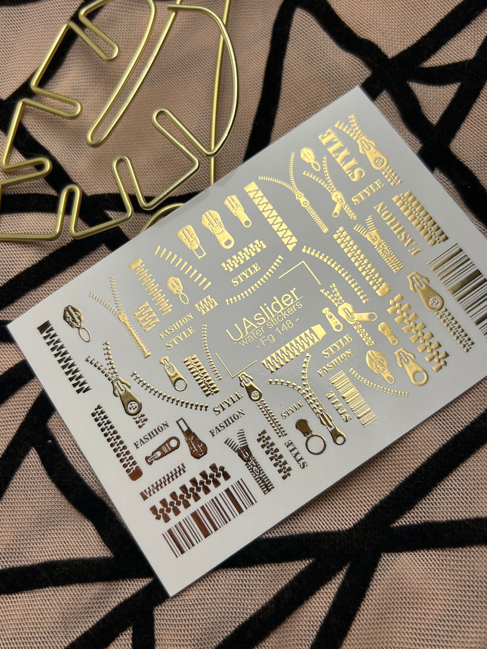 Nail Water Decal Fg-148 | Water Slide Nail Decals with Gold Zippers and Barcode | Fashion Style Nail ArtFg_148