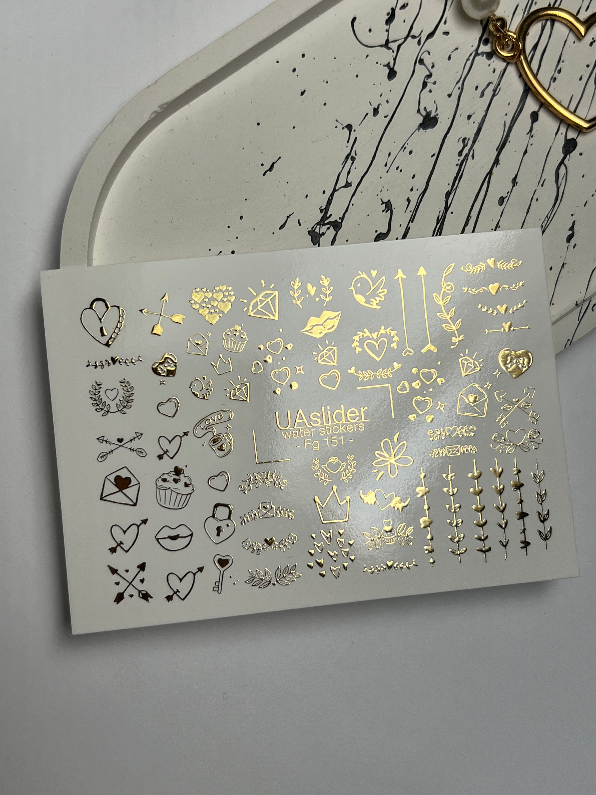 Nail Water Decal Fg-151 | Gold Foil Water Slide Nail Decals | Romantic Love SymbolsFg_151