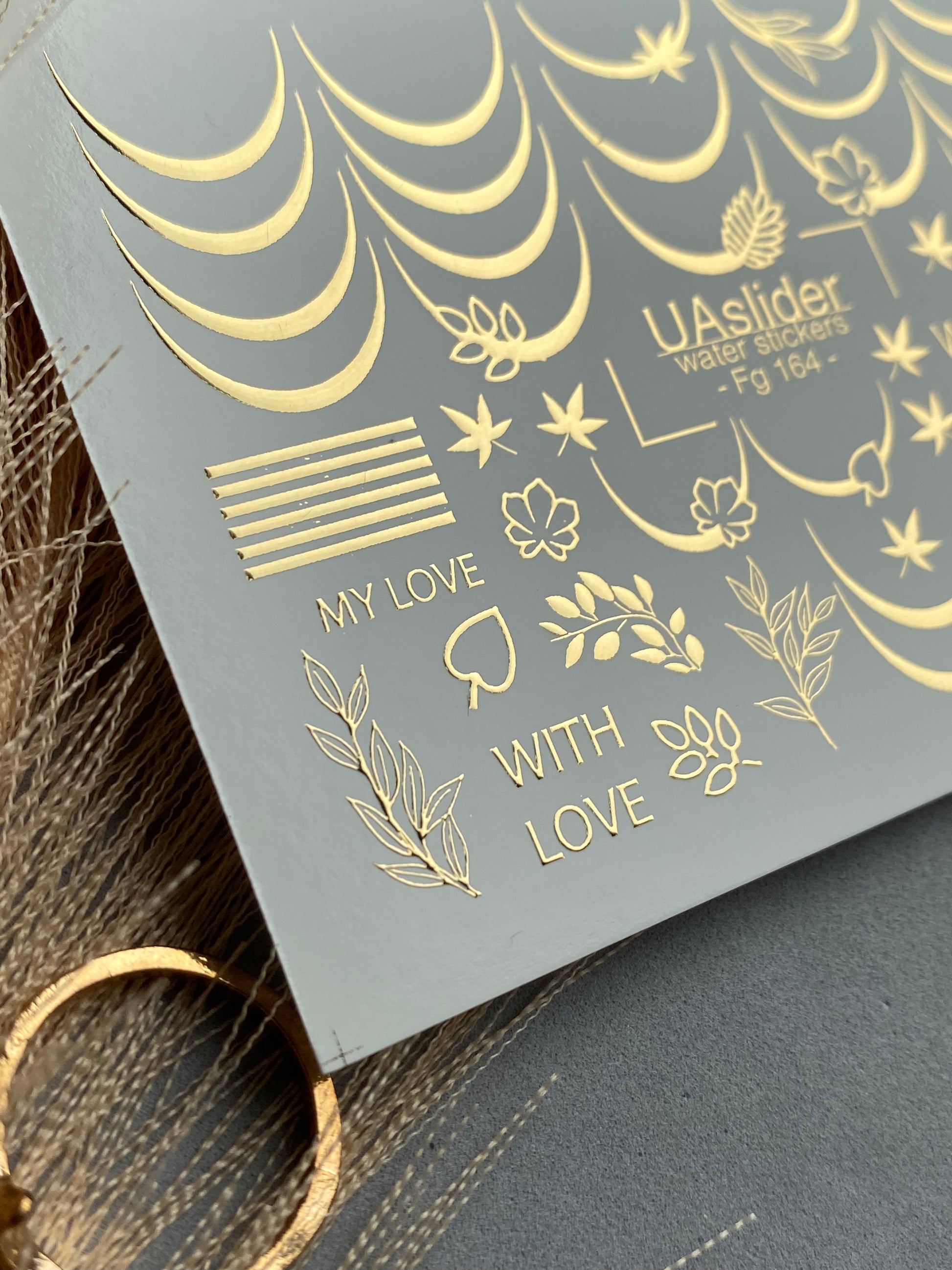 Nail Water Decal Fg-164 | Gold Foil Water Slide Nail Decals | French Lines & Botanical AccentsFg_164