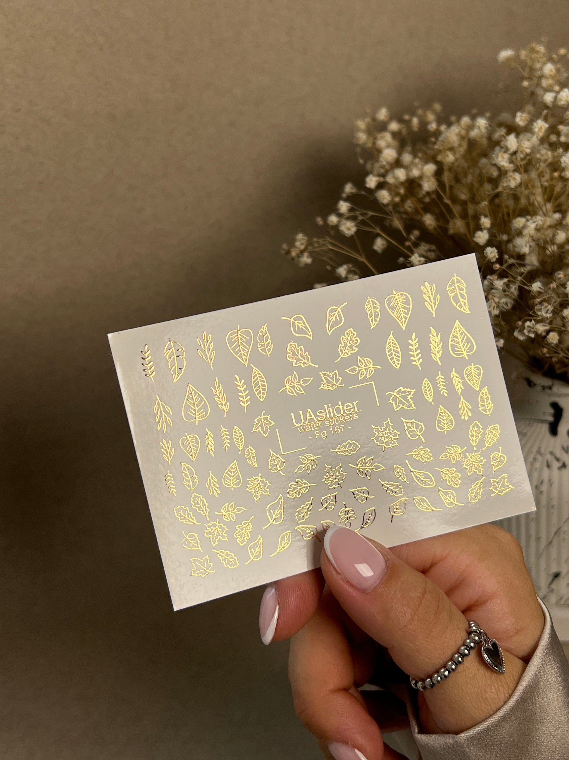 Water slide nail decals with a foil work beautifully over any gel polish shade, ensuring vivid and crisp designs.