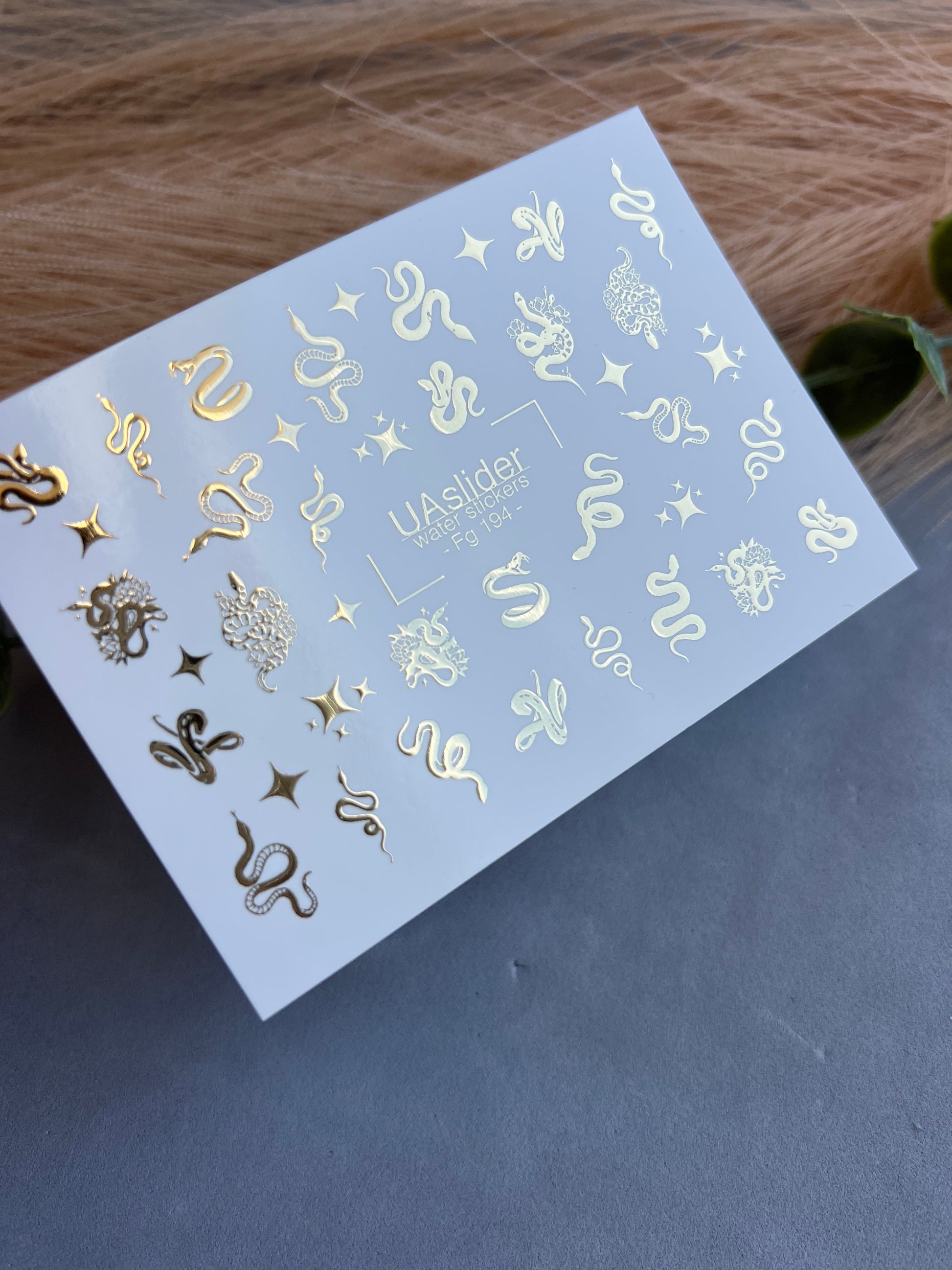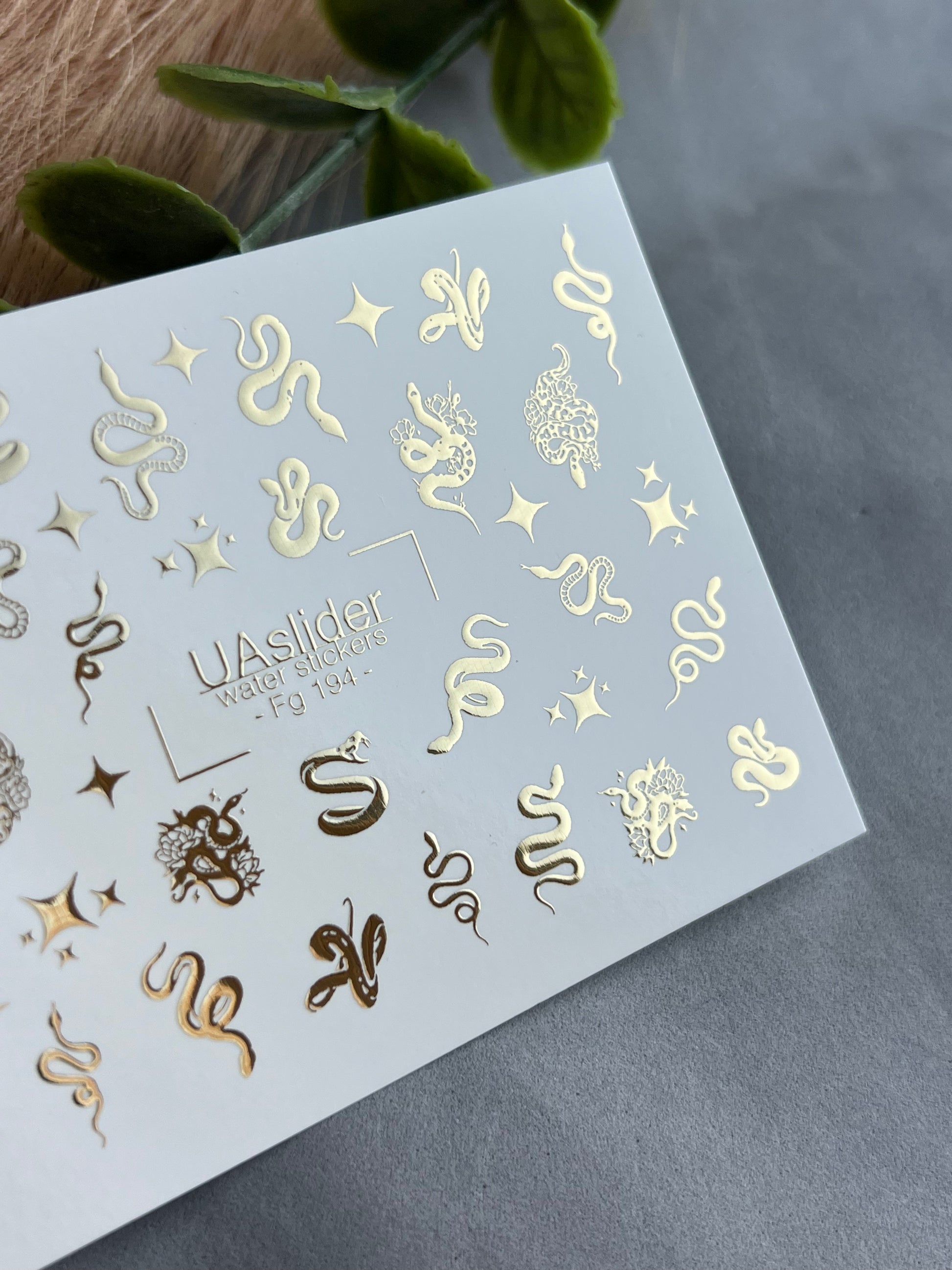 Nail Water Decal Fg-194 | Water Slide Nail Decals | Gold Foil Snakes & Stars