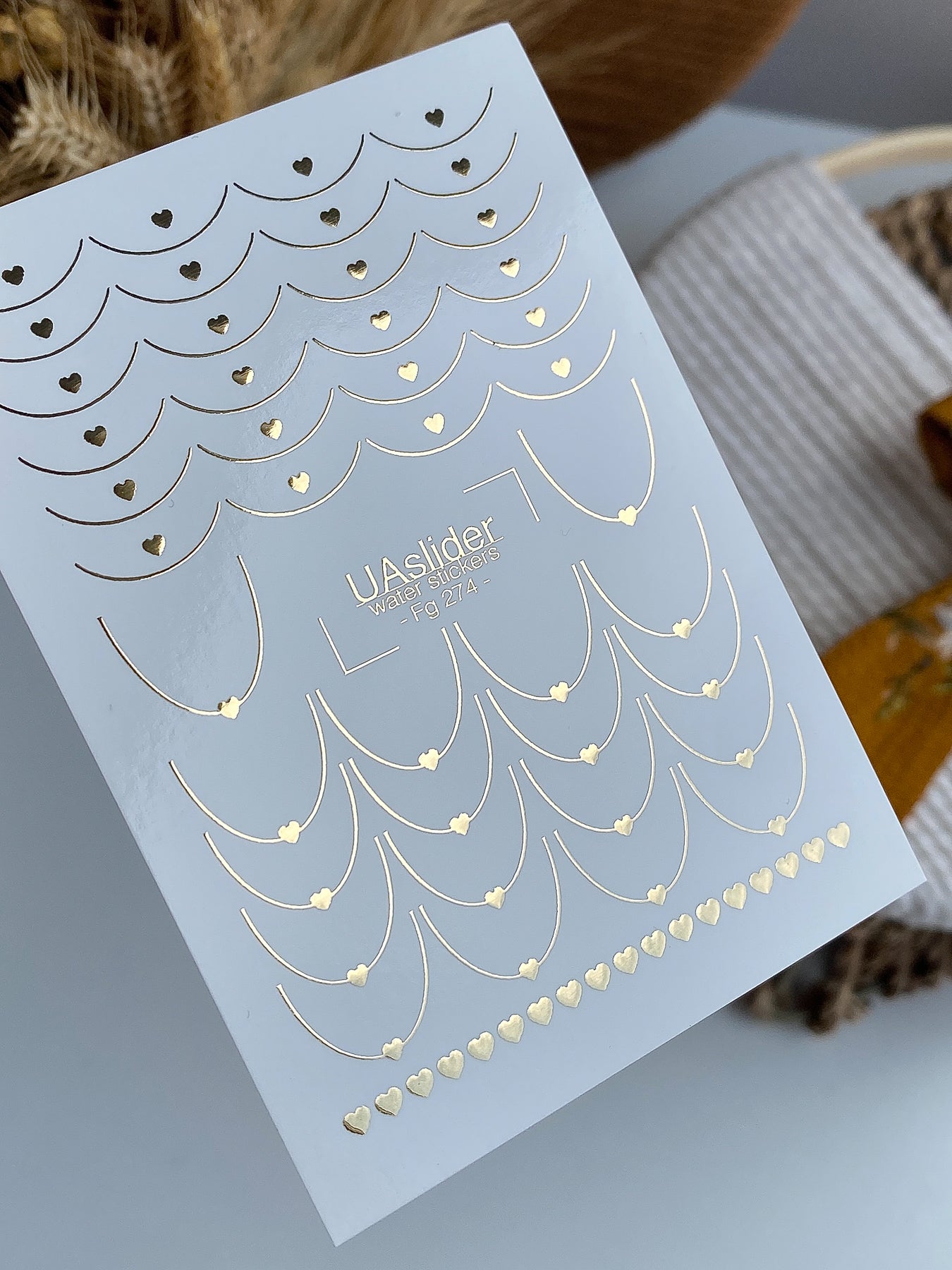 Nail Water Decal Fg-274 | Water Slide Nail Decals | Gold Foil French Tips with HeartsFg_274