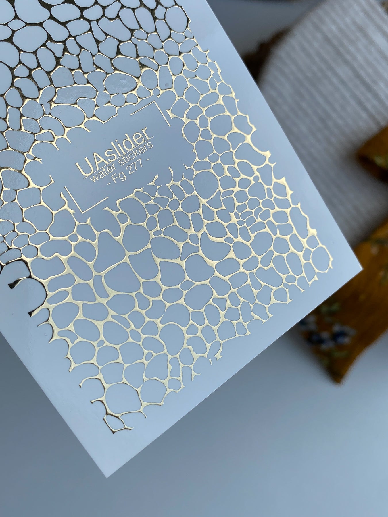 Nail Water Decal Fg-277 | Water Slide Nail Decals | Gold Foil Abstract Net PatternFg_277