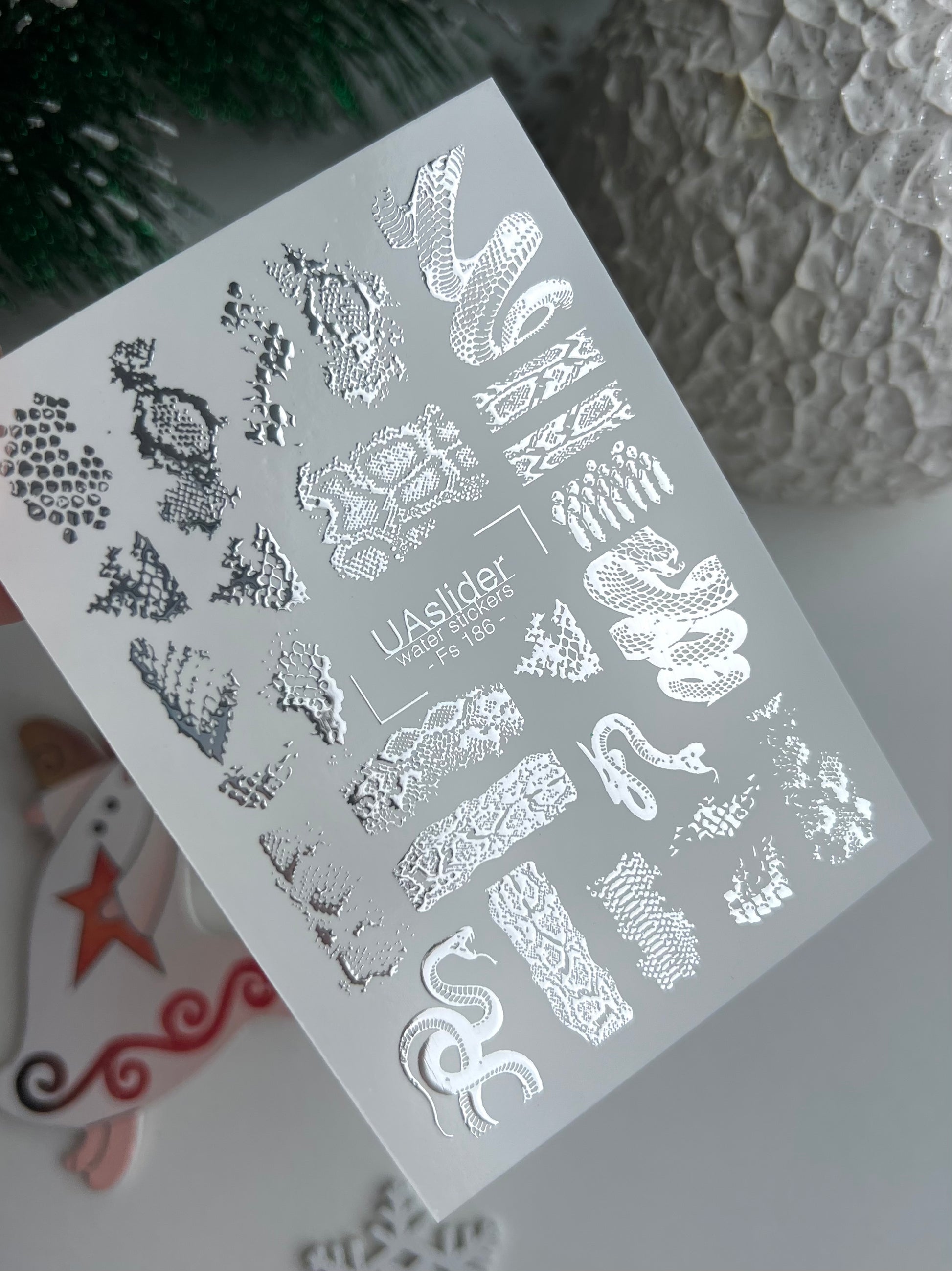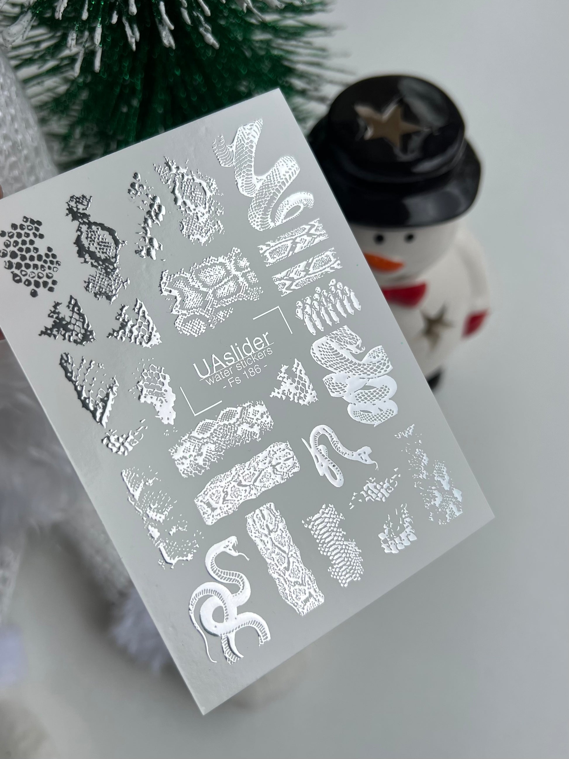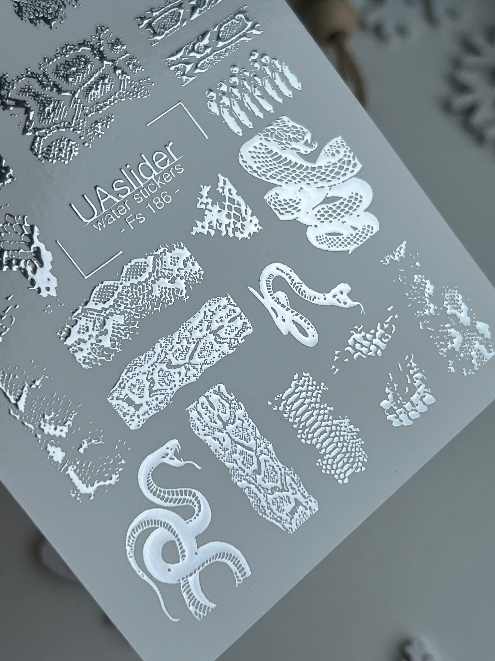 Water slide nail decals with snake print and reptile-inspired textures, including detailed snake shapes and scaled patterns. These nail water decals add a bold and exotic vibe to your manicure, perfect for statement nail art.