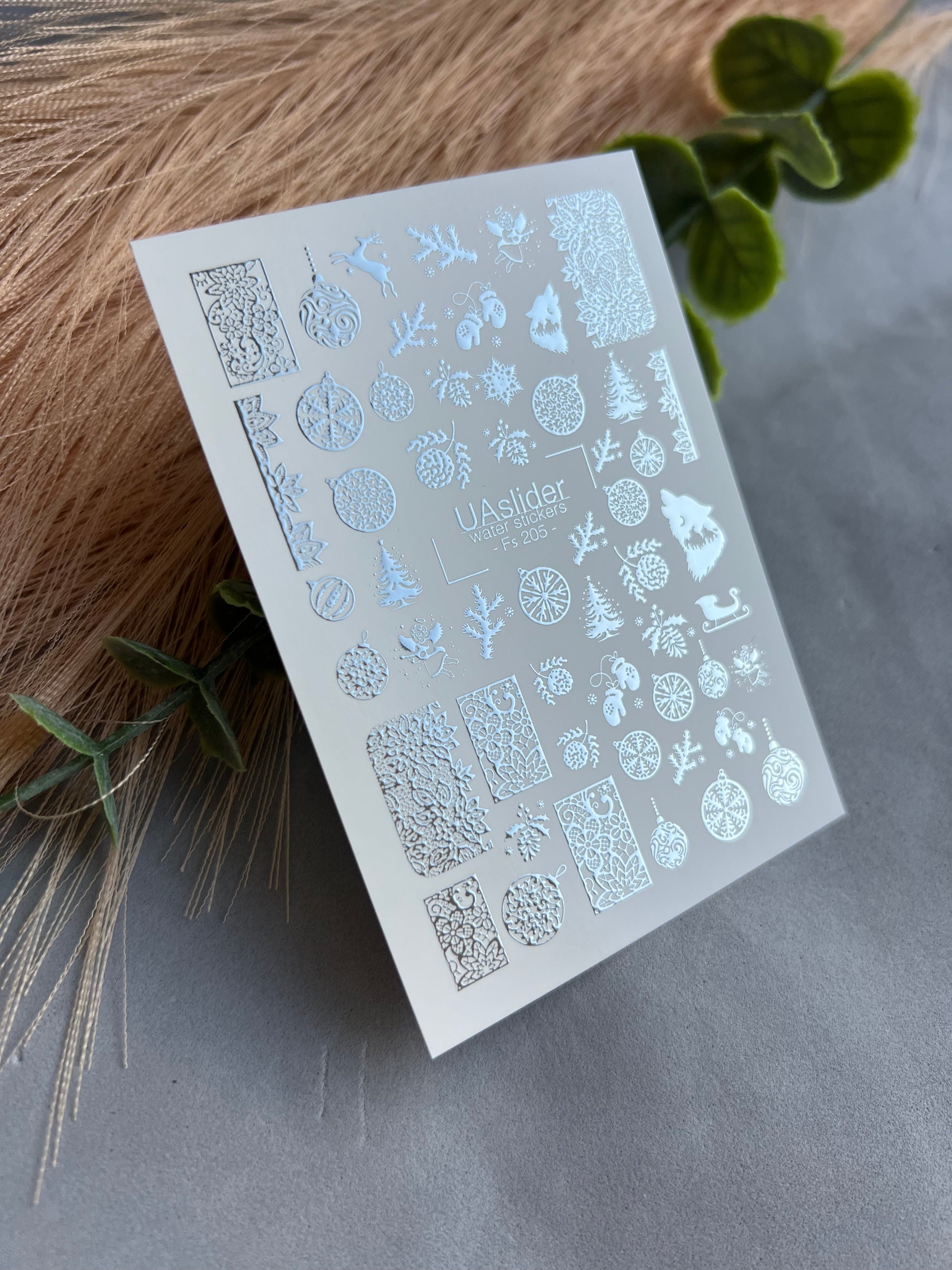 Nail Water Decal Fs-205 | Water Slide Nail Decals Christmas Ornaments | Snowflakes, Trees and Full CoverFs_205