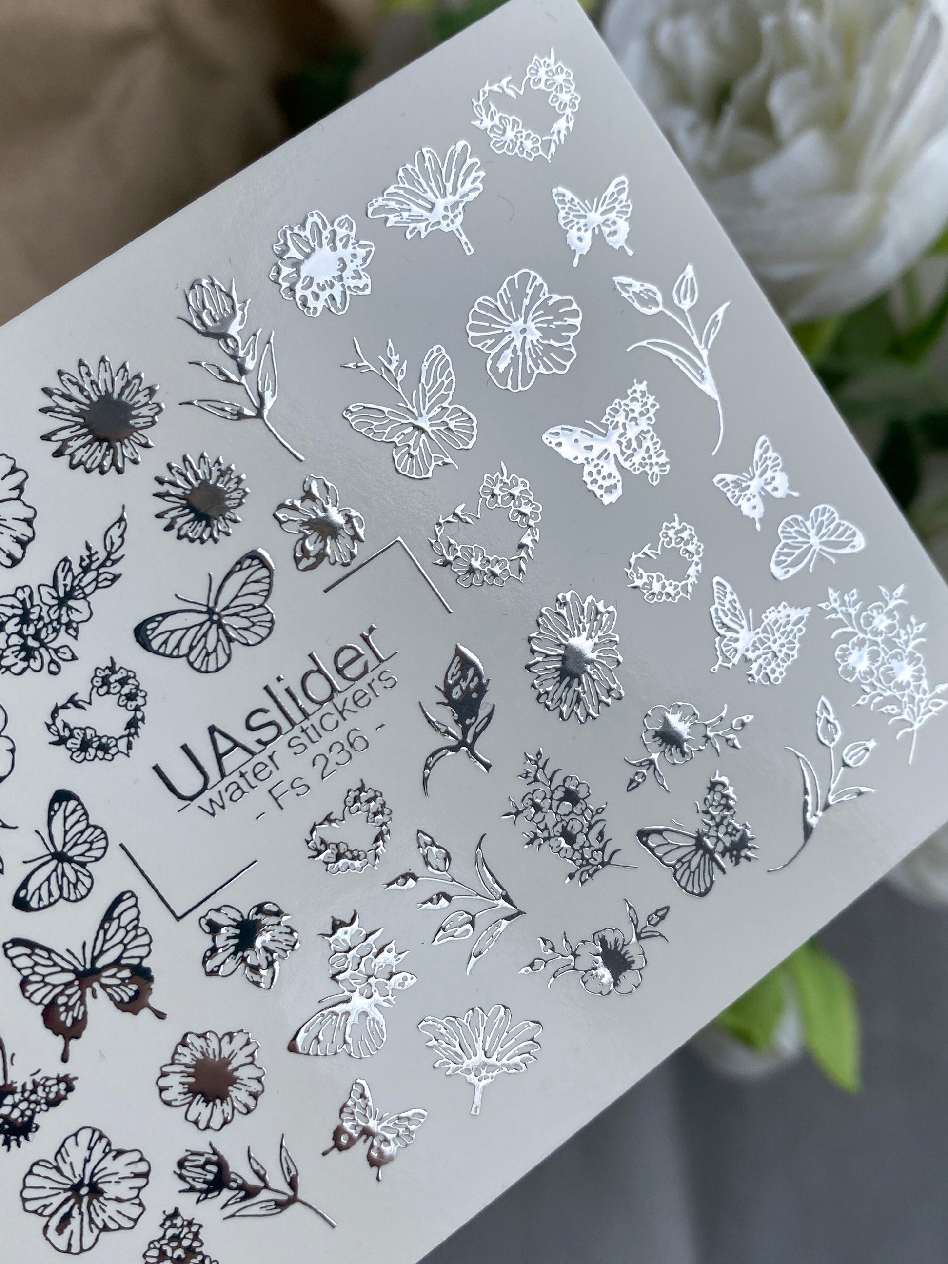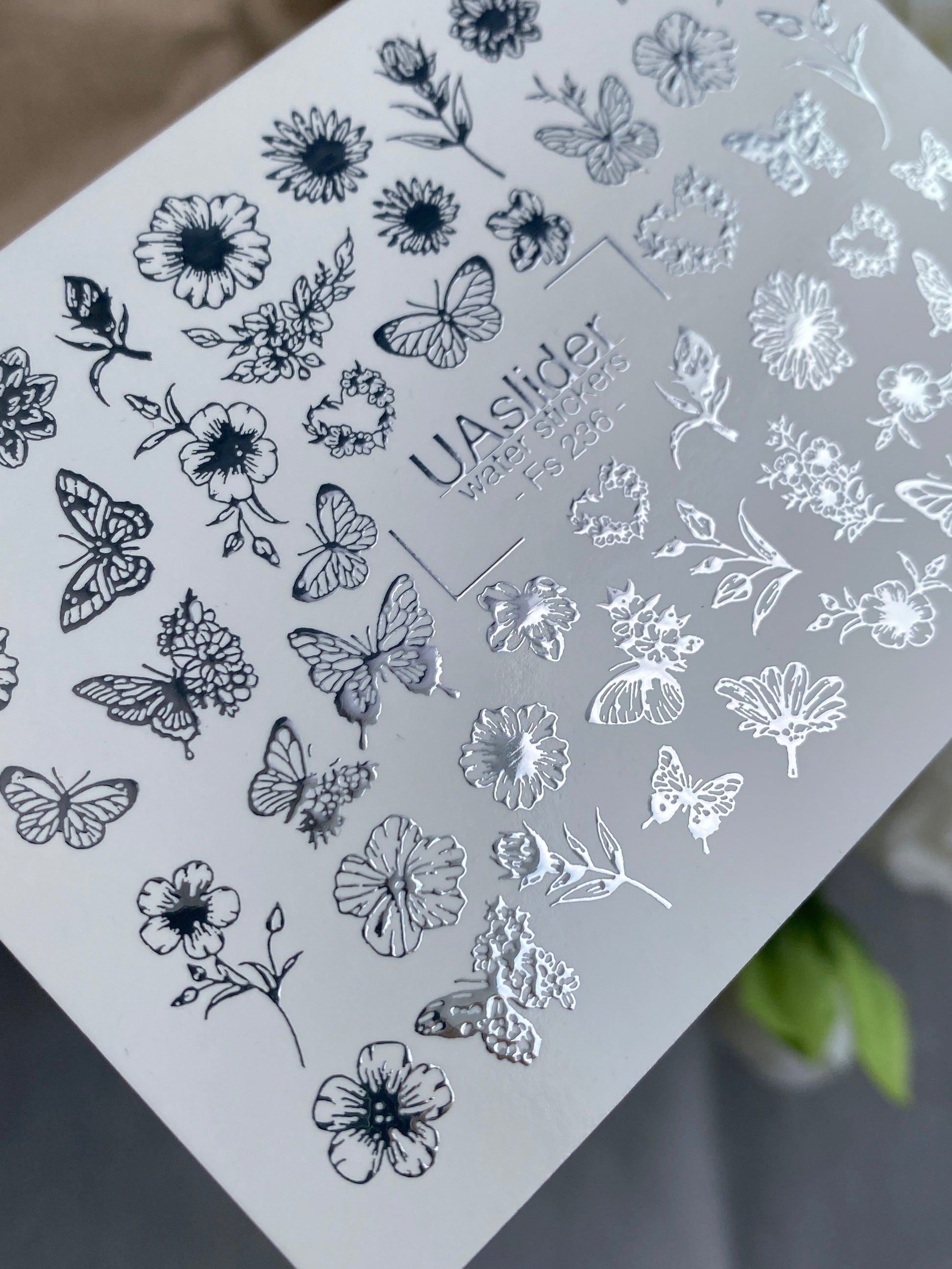 Nail Water Decal Fs-236 | Water Slide Nail Decals Butterfly and Flowers | Delicate Floral Nail Art