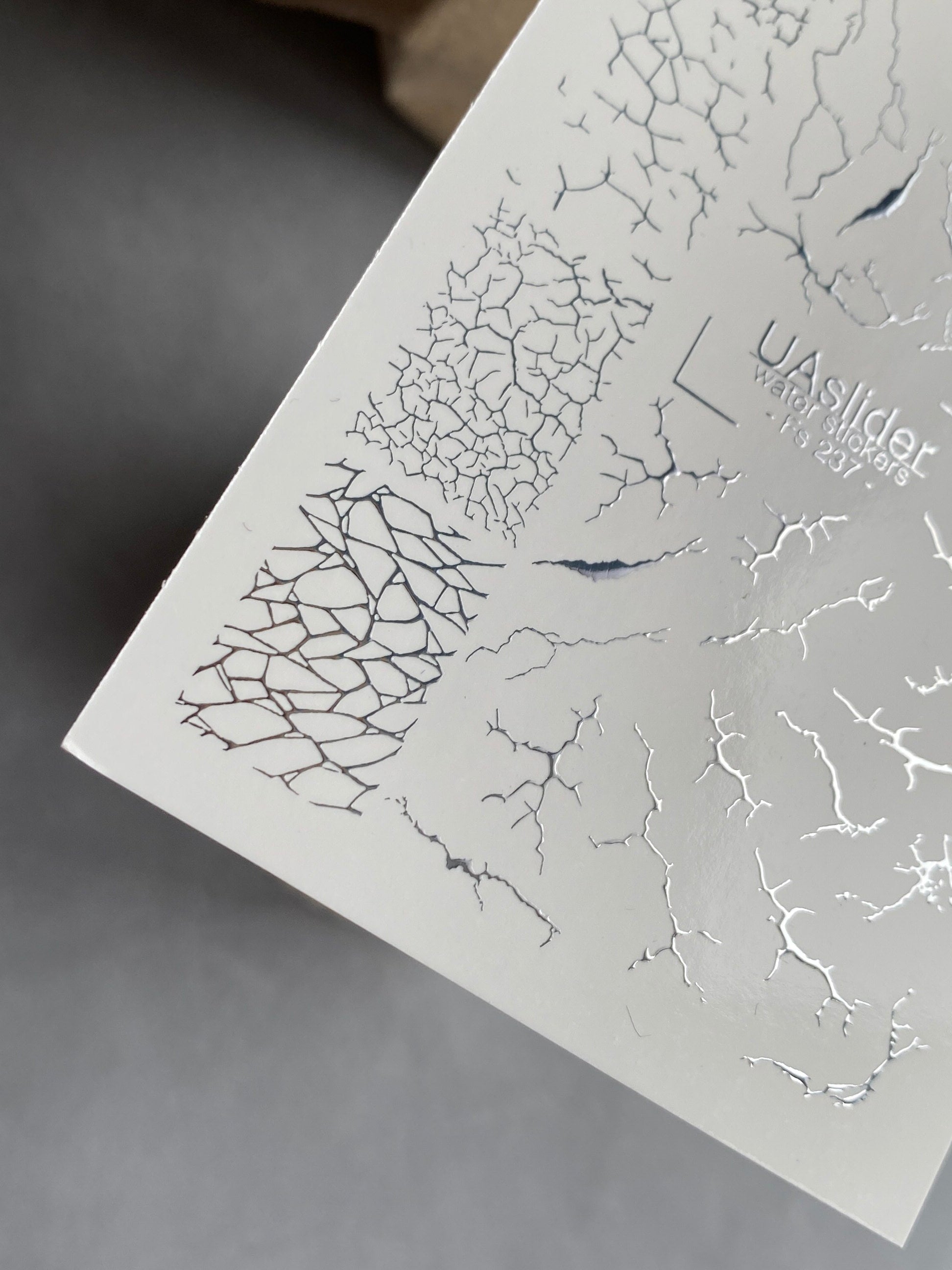 Water slide nail decals with unique crack-effect patterns that mimic broken surfaces and abstract textures. These nail water decals are perfect for grunge, edgy, or artistic manicure styles.