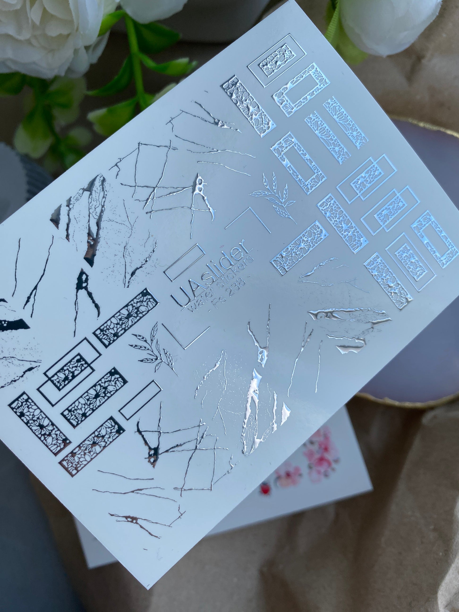Nail Water Decal Fs-238 | Water Slide Nail Decals Marble Crack and Geometry | Modern Abstract Nail Art