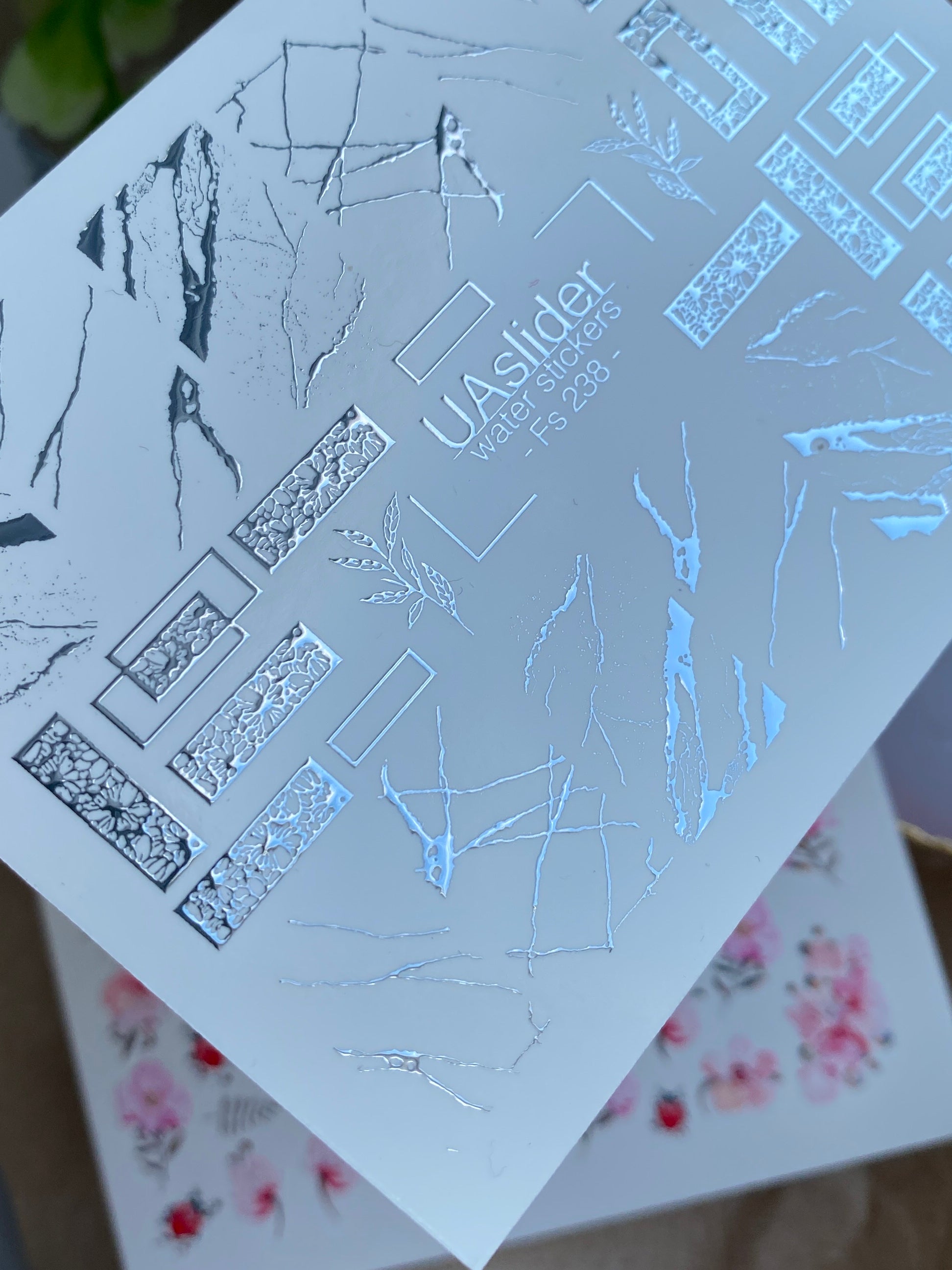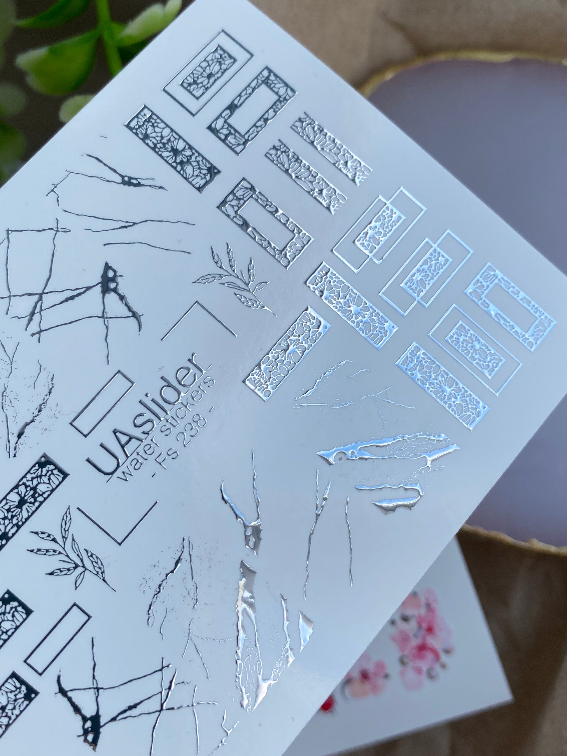 Nail Water Decal Fs-238 | Water Slide Nail Decals Marble Crack and Geometry | Modern Abstract Nail ArtFs_238