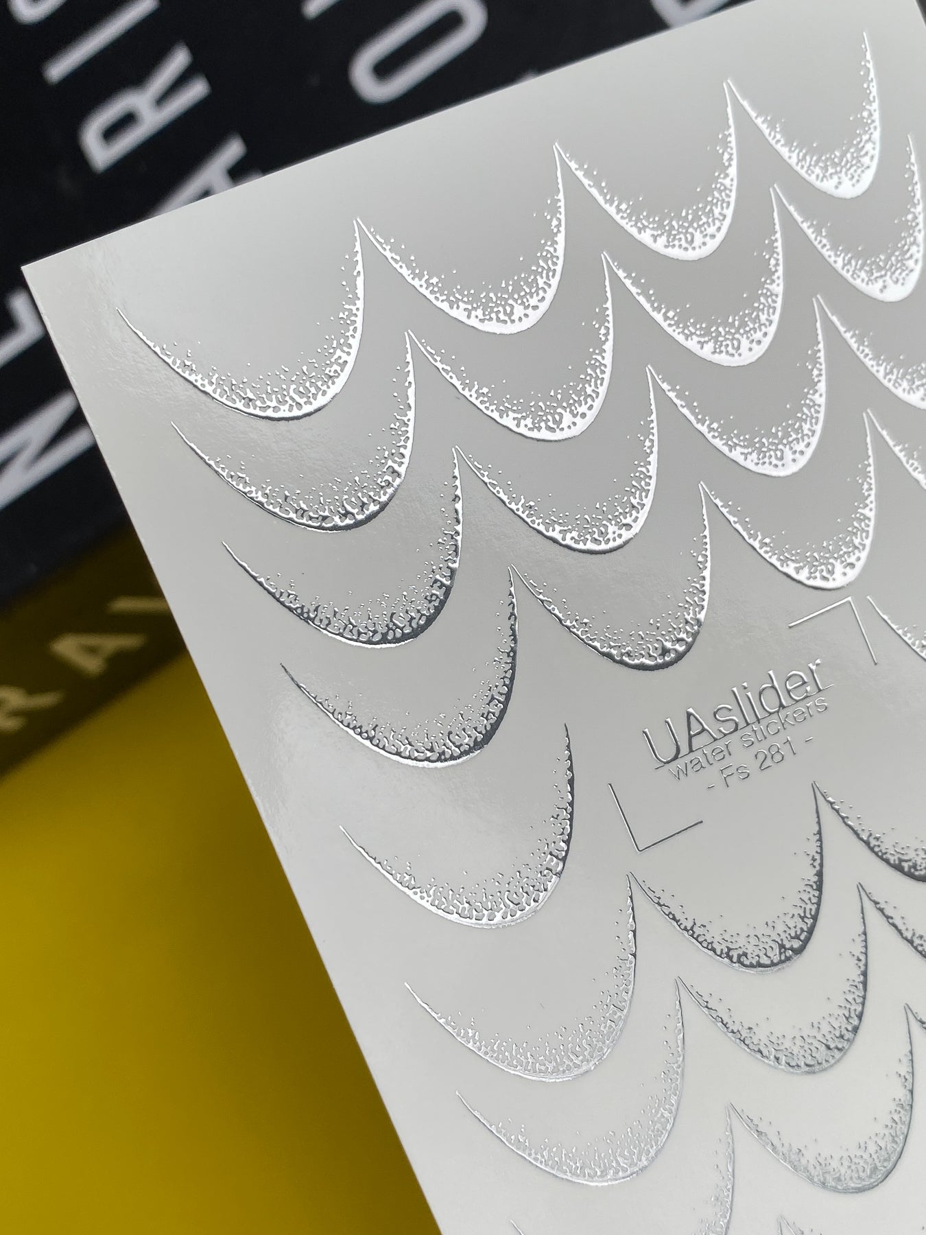 Nail Water Decal Fs-281 | Silver Half Moon Water Slide Nail Decals | Gradient Foil Geometric DesignFs_281