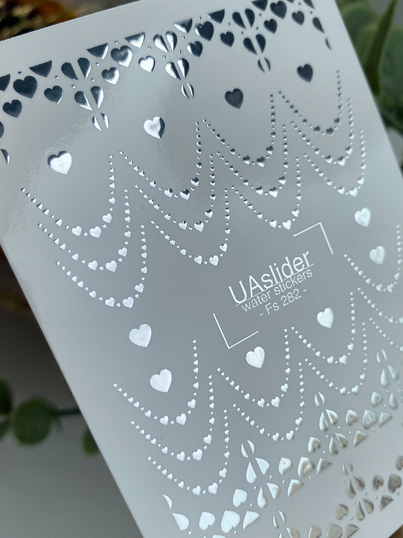 Nail Water Decal Fs-282 | Silver Heart Chain Water Slide Nail Decals | Romantic Foil Nail TattoosFs_282
