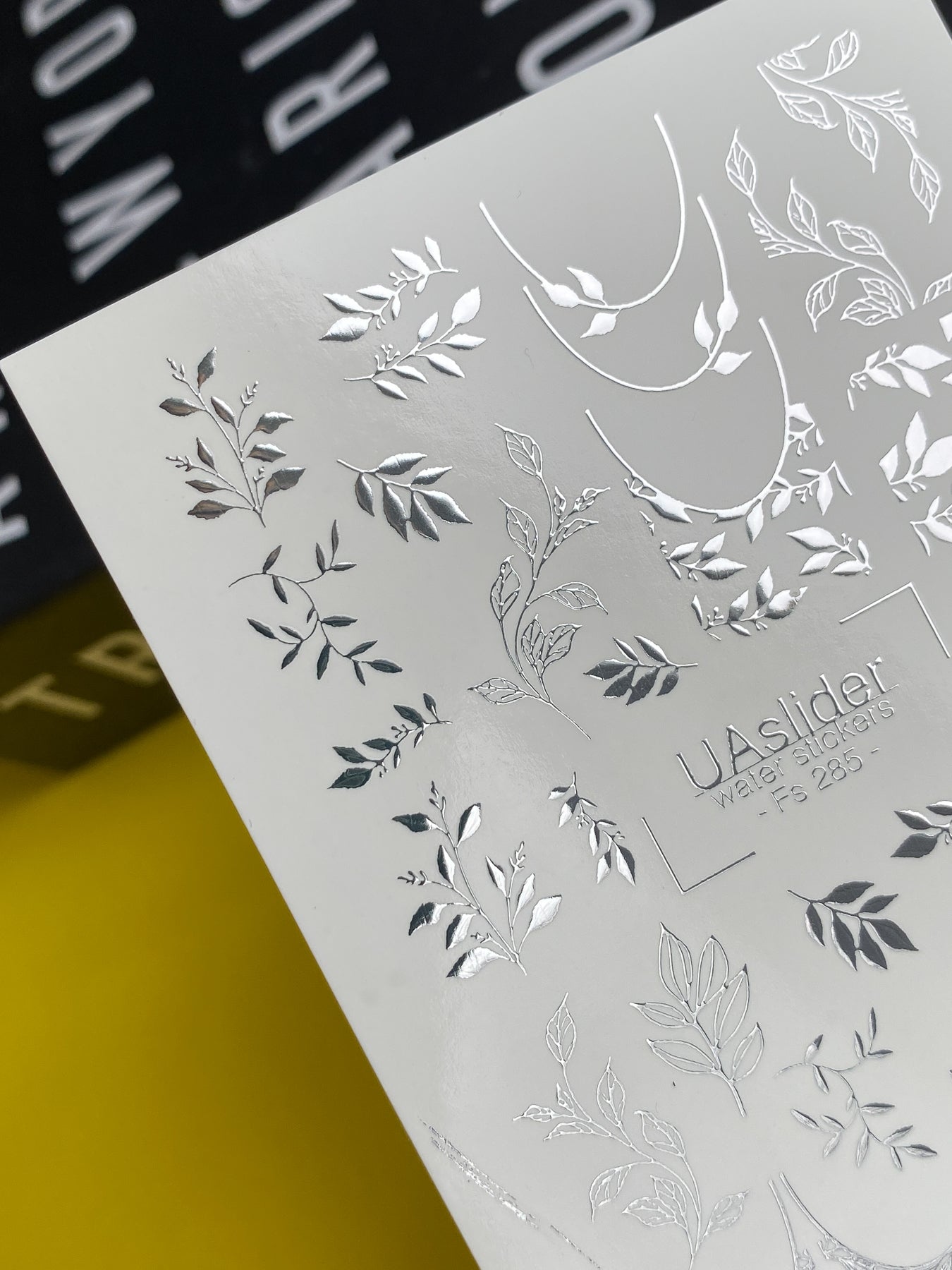 Nail Water Decal Fs-285 | Silver Leaf Branch Water Slide Nail Decals | Elegant Foil Botanical Nail TattoosFs_285