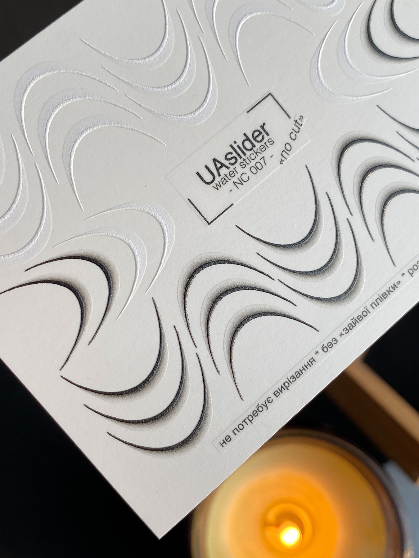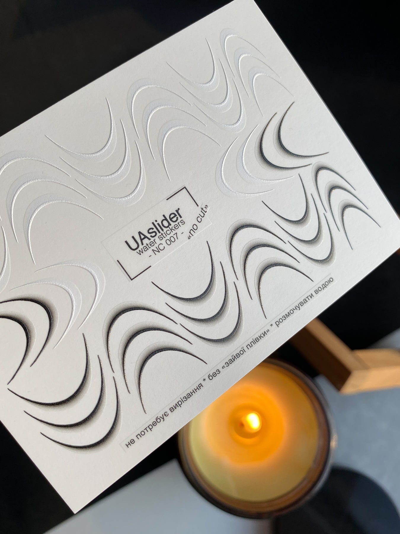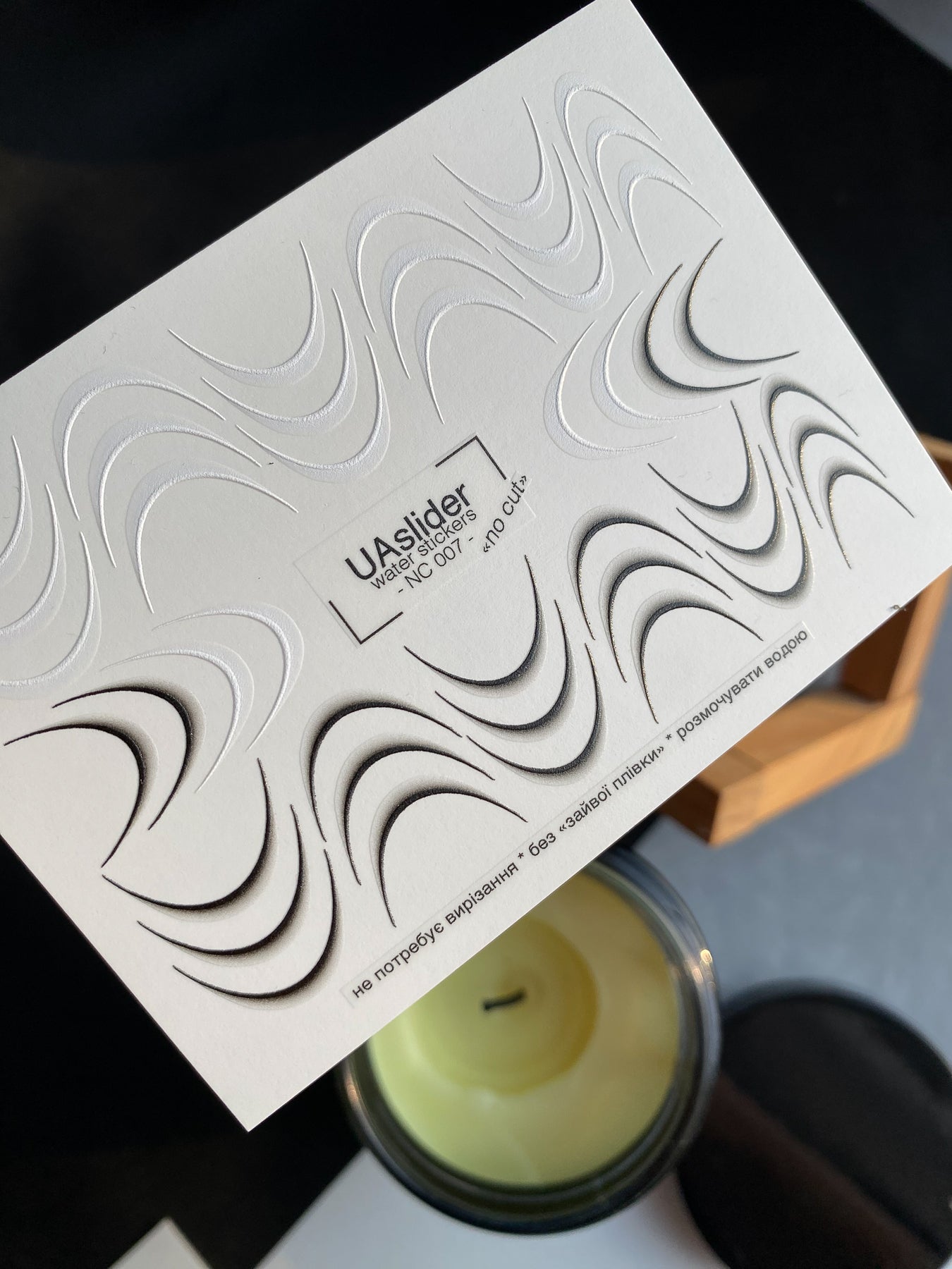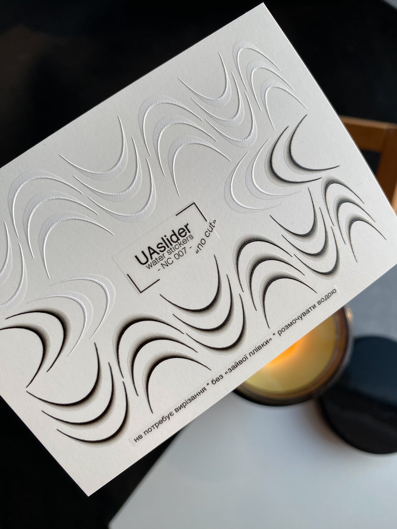Modern French water slide nail decals with abstract curved smile lines and soft shadow accents. These nail water decals are water-activated — simply soak to apply, and warm water ensures a smooth release. Cutting is not required, though trimming can be done for convenience. Each design slides off with water and transfers evenly onto the nail surface. Perfect for creating trendy French manicures with a unique, graphic twist.