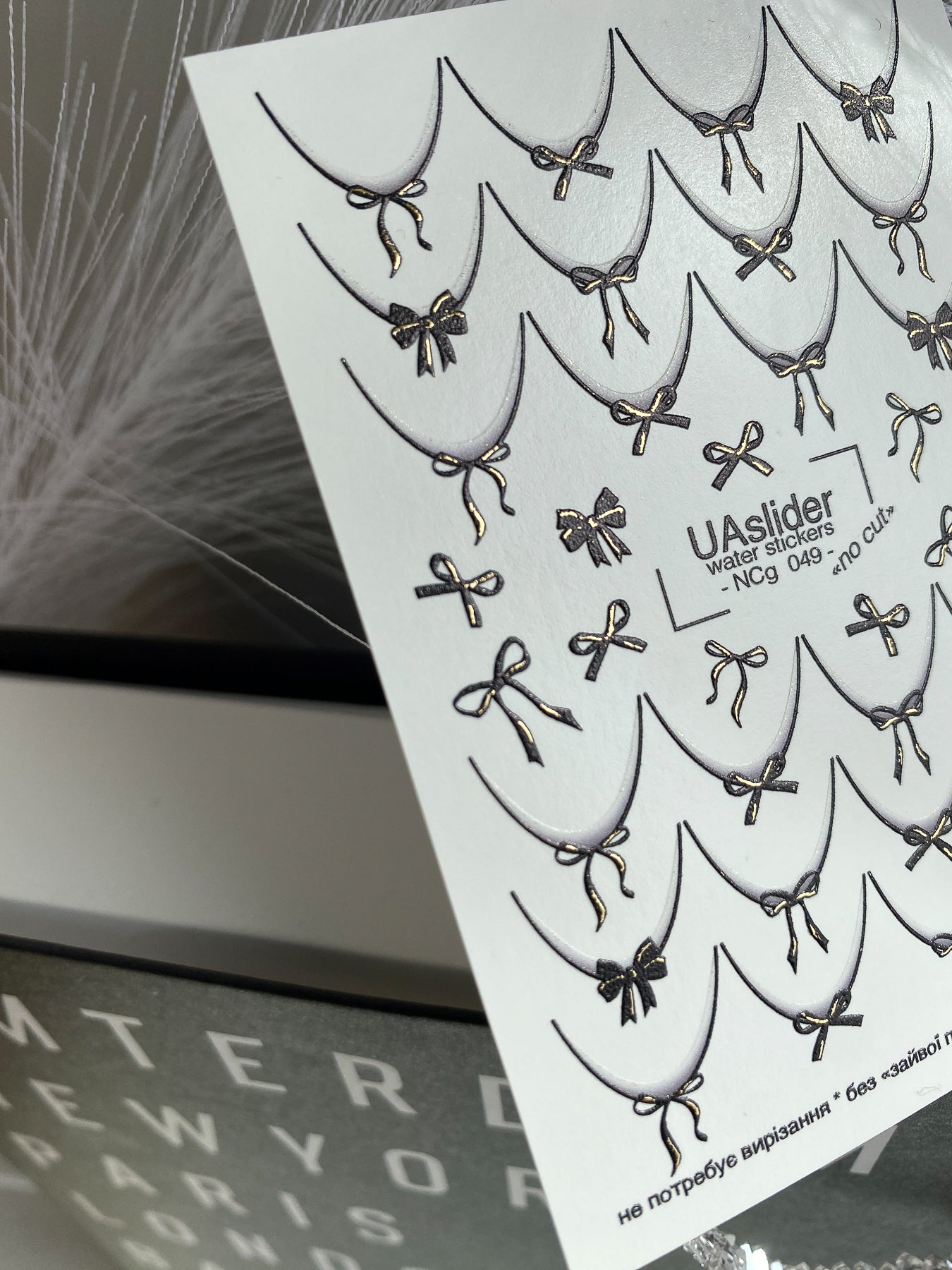 Nail Water Decal NCg-049 | French Water Slide Nail Decals | Black Bows & Elegant TipsNCg_049