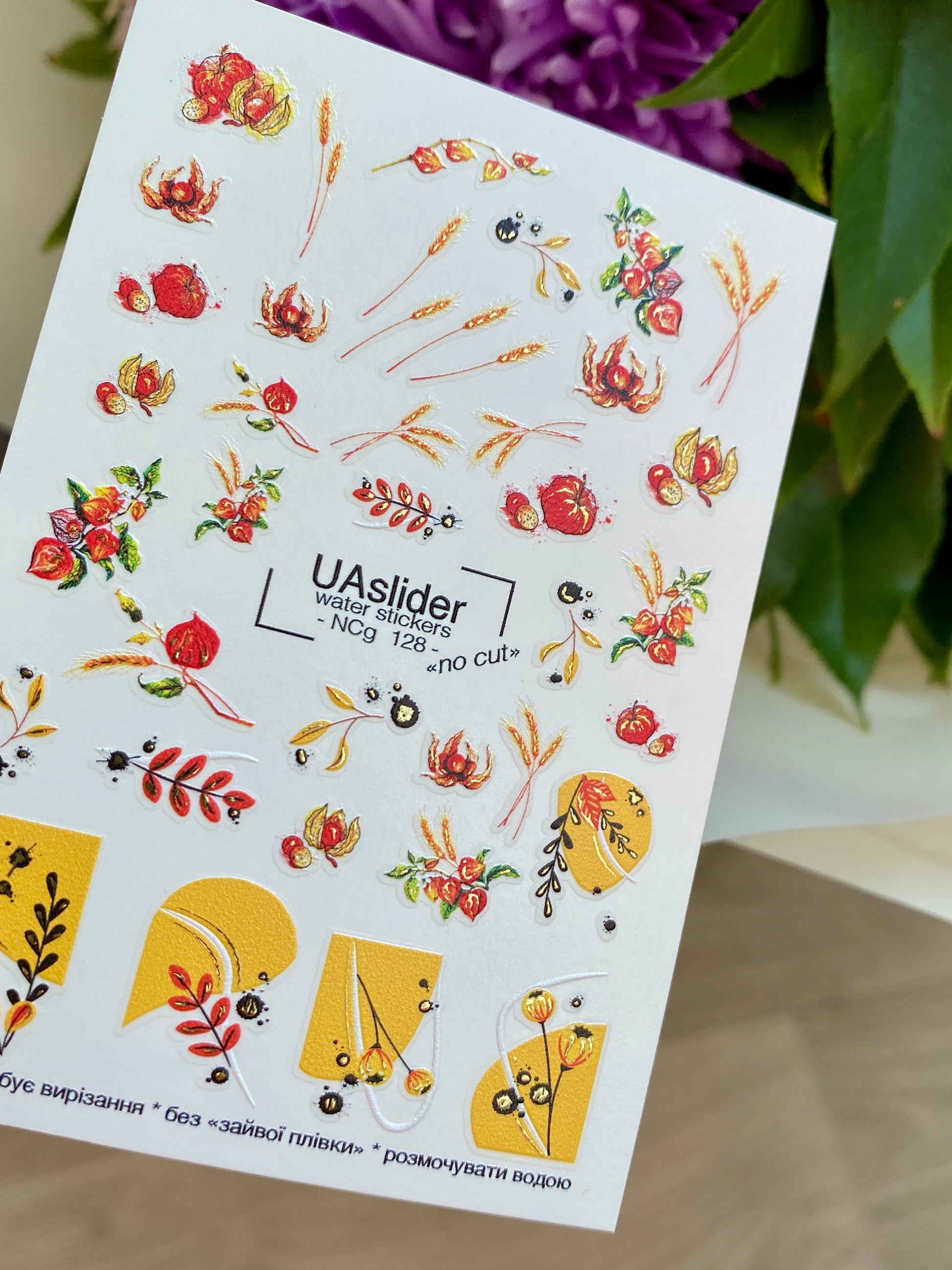 Perfect for harvest-inspired manicures, cozy fall nail tattoos, and seasonal nail water decals. Suitable for gel and acrylic nails. For convenience, you can cut out the chosen element before applying.
