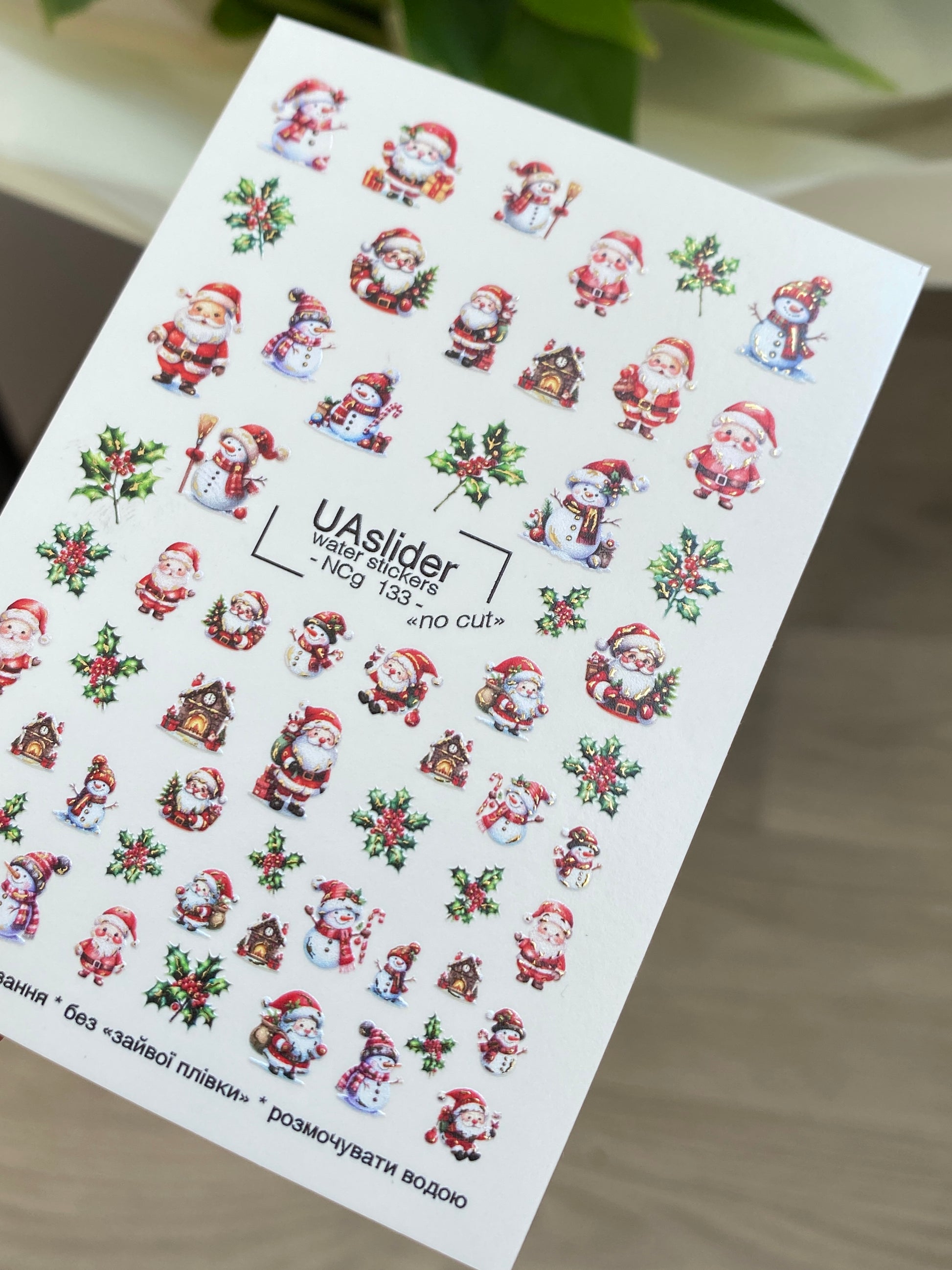Nail Water Decal NCg-133 | Water Slide Nail Decals with Santa Claus and Snowmen | Christmas Nail ArtNCg_133